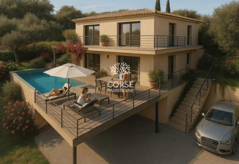 Vente Maison Sari solenzara REF:2781 Dans un secteur prisé de Solenzara, entre la mer turquoise et les reliefs corses, cette superbe villa contemporaine de 135 m2 offre un équilibre parfait entre confort, intimité et panorama spectaculaire.Nichée dans un environnement paisible, elle séduit par son architecture élégante, ses volumes généreux et la qualité de ses finitions.L’entrée […]