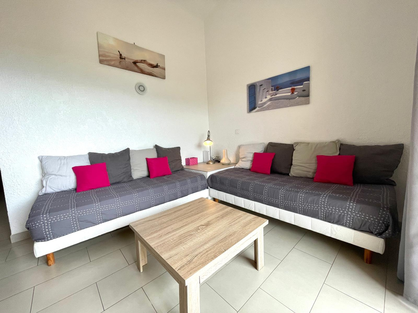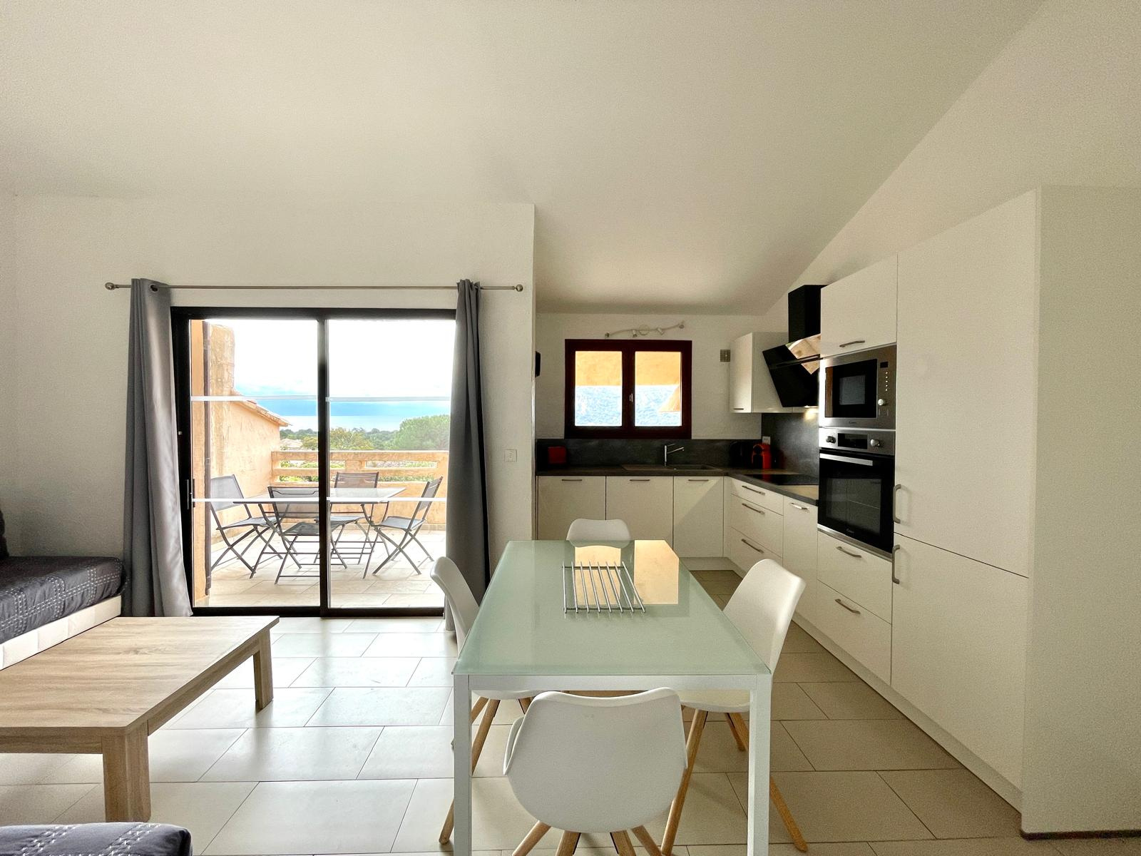 Appartement de 42m2, cuisine américaine,coin repas,salon avec grande terrasse et son barbecue où vous prendrez vos repas en contemplant la mer. Une chambre avec lit de 160 plus 2 couchages de 90 dans le salon, une sdb avec grande douche et un wc indépendant complètent ce logement à la décoration moderne Accès direct au parc et à la piscine. La résidence se situe à 300 m à pied de la mer et de la plage de sable. Wifi fibre Parking Aéroport Figari à 30 mn Ferry à Porto Vecchio Borne électrique
