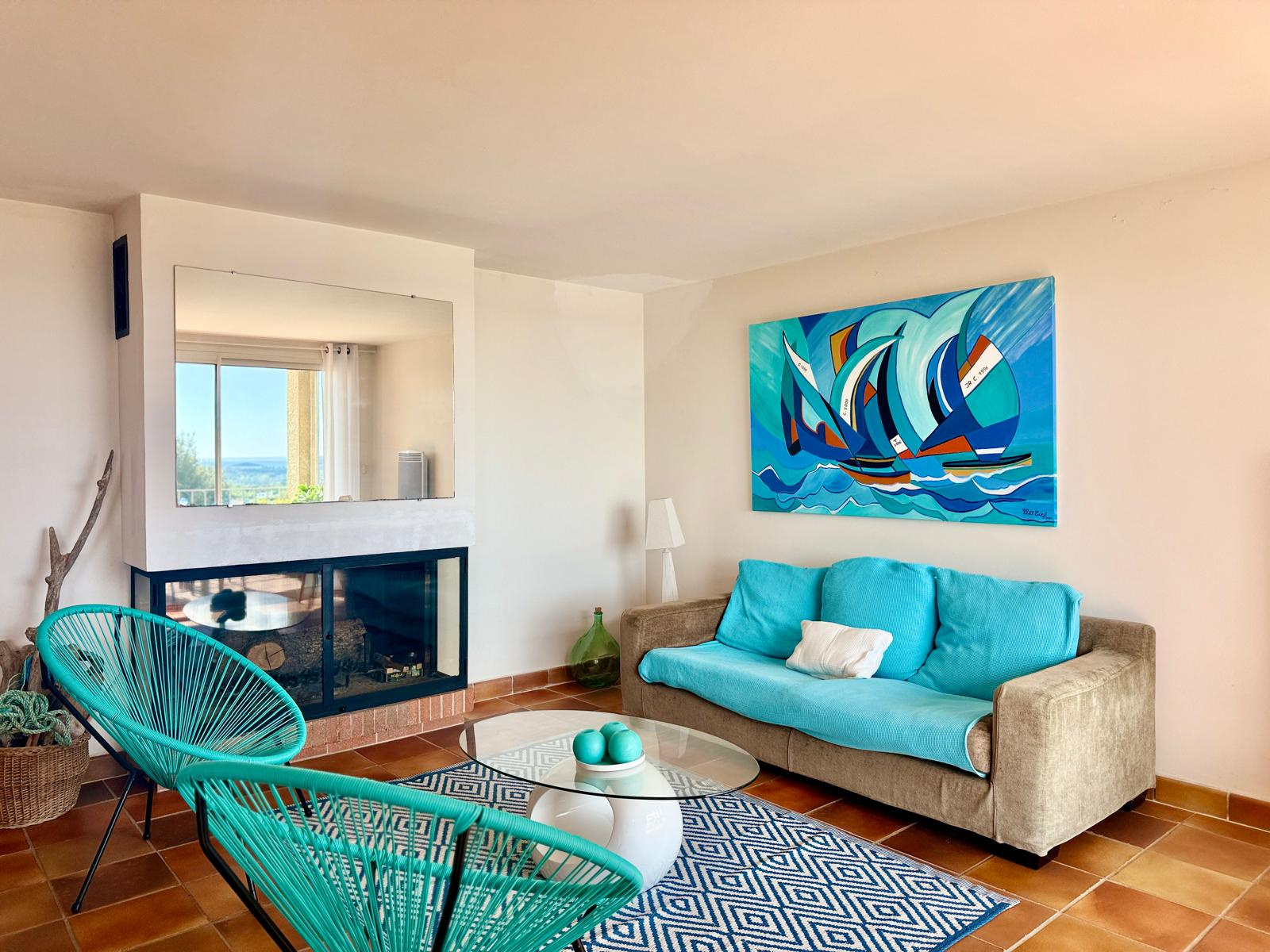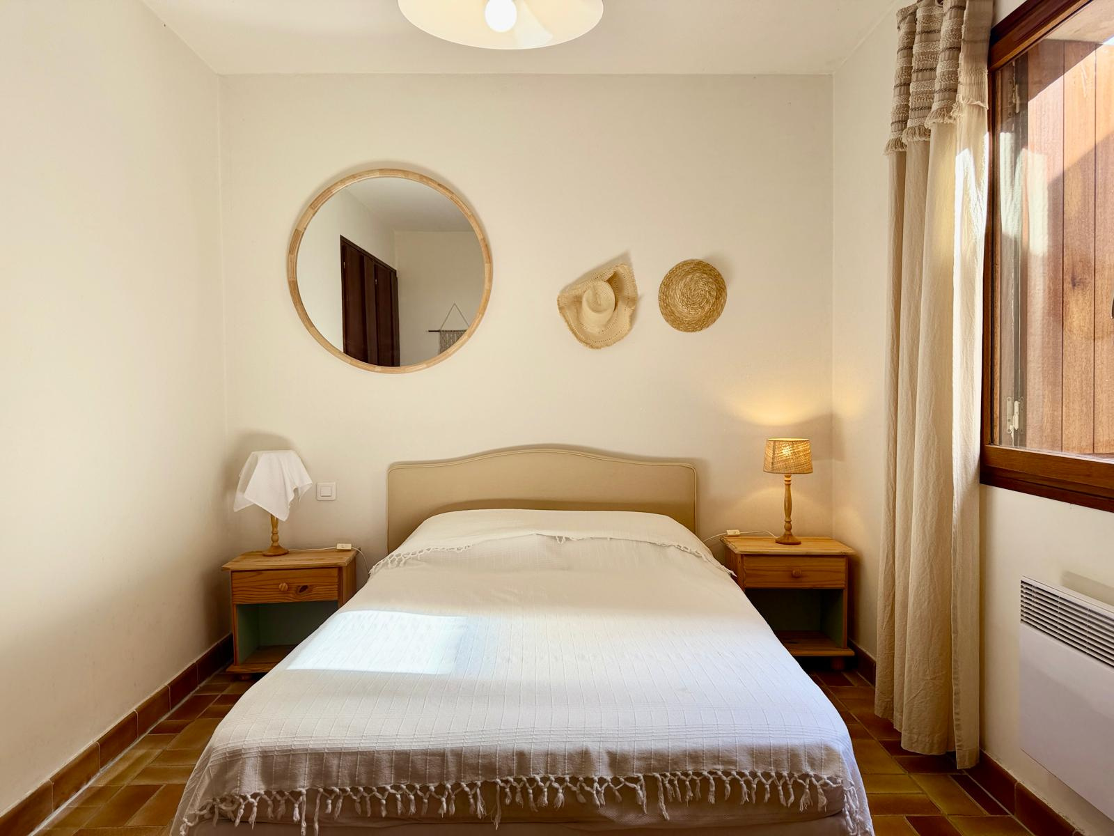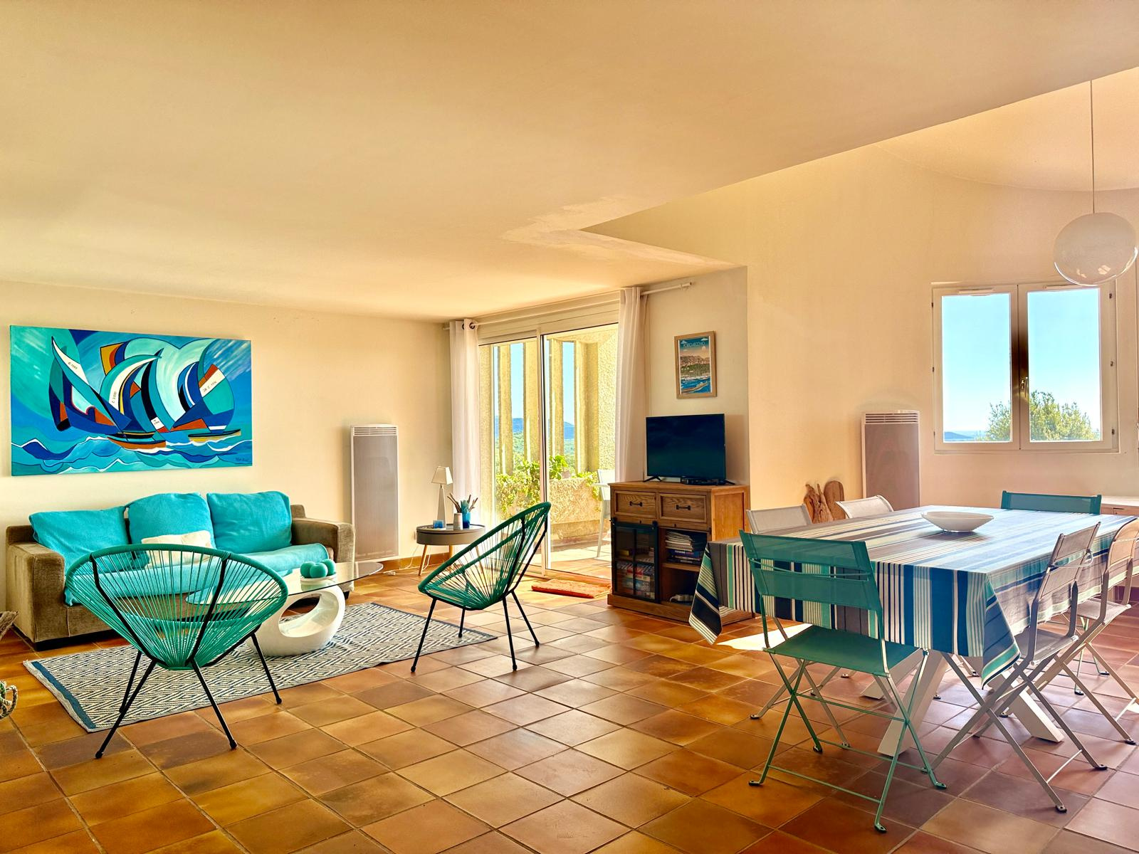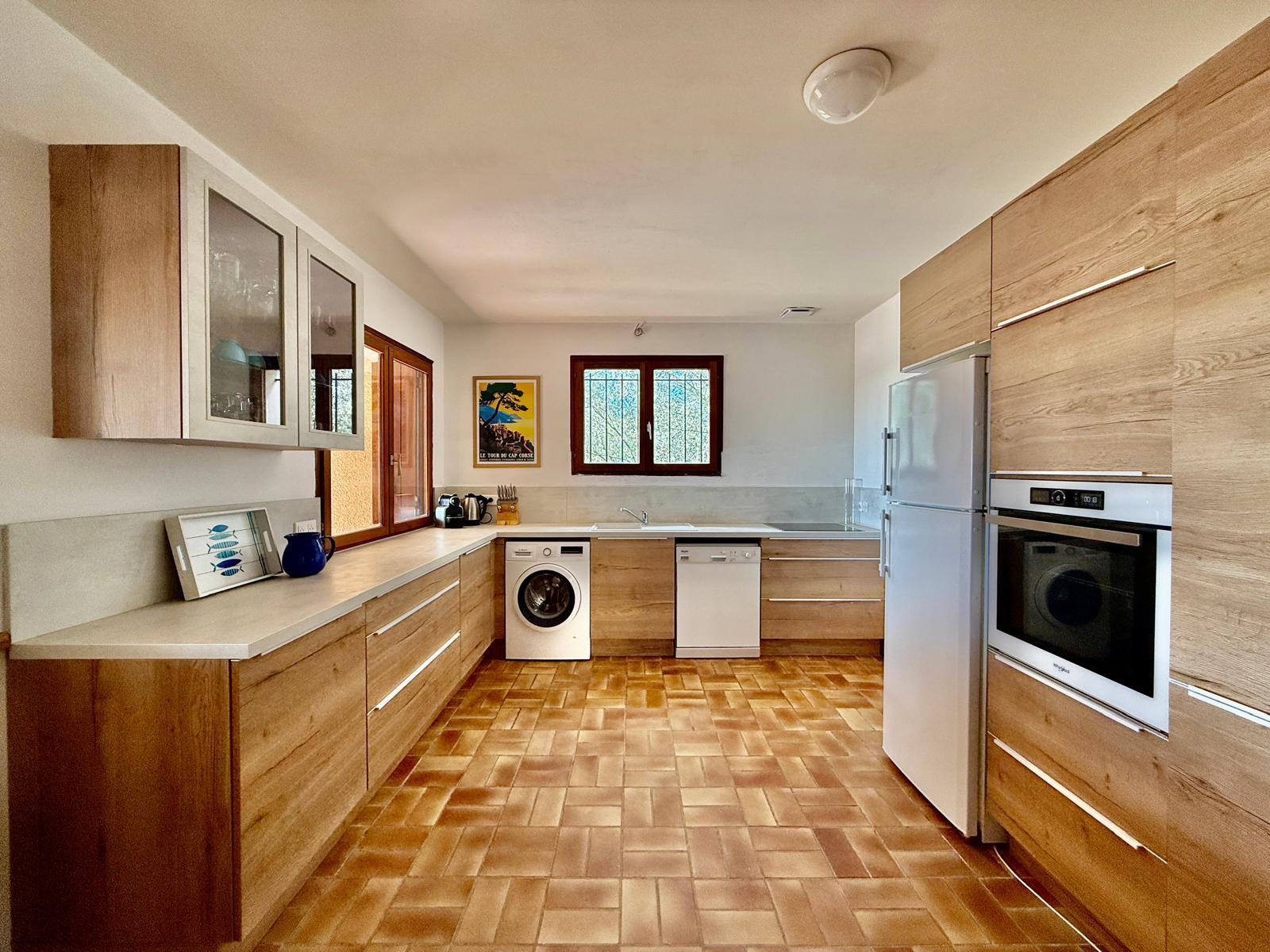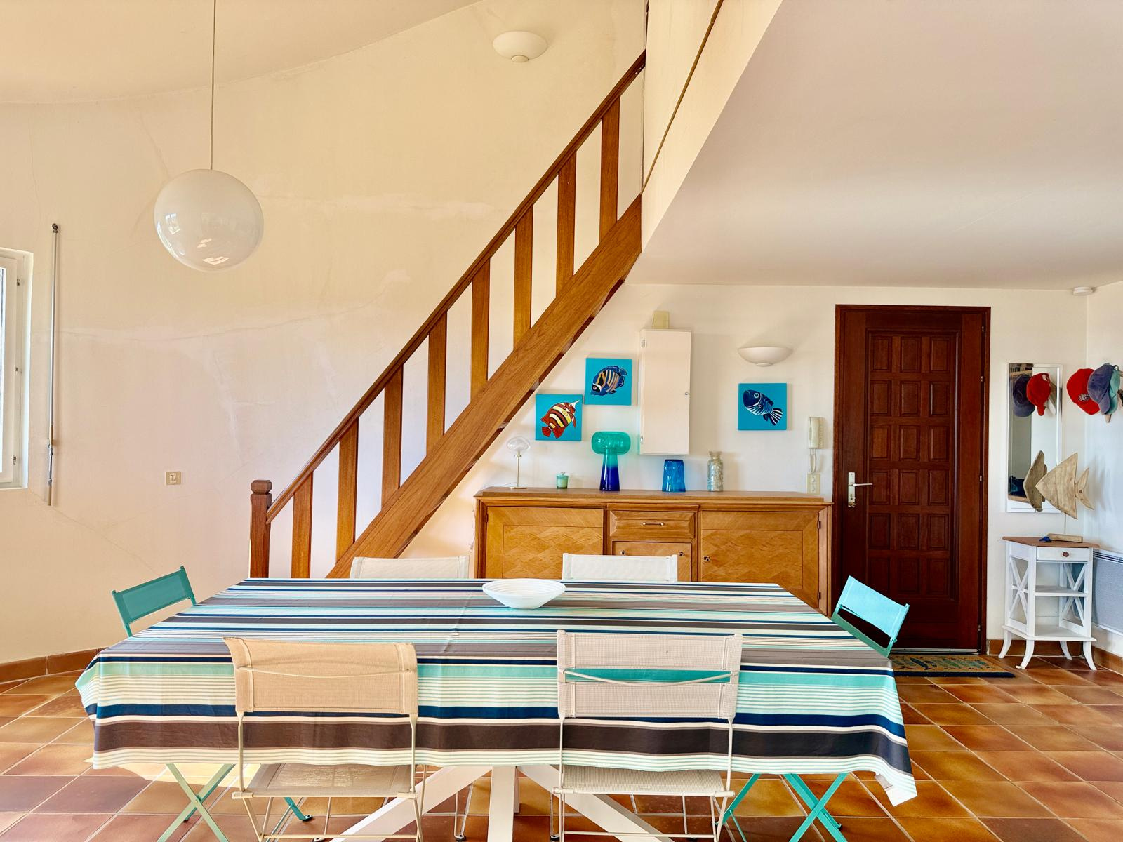 La maison peut accueillir jusqu’à six personnes grâce à ses trois chambres, toutes équipées d’un lit double en 140 cm. C’est l’endroit rêvé pour un séjour en famille ou entre amis, dans une atmosphère paisible et dépaysante. L’agencement des espaces permet à chacun de profiter pleinement de son séjour, entre moments de partage et instants de tranquillité. Le séjour lumineux comprend un espace salon pour se détendre ainsi qu’une salle à manger conviviale, parfaite pour les repas en intérieur. La cuisine est entièrement équipée : lave-vaisselle, lave-linge, four, micro-ondes, plaques de cuisson, réfrigérateur, cafetière… tout est prévu pour faciliter votre quotidien et vous permettre de cuisiner comme à la maison. La maison dispose de deux salles d’eau modernes : l’une avec douche et lavabo, l’autre avec douche, lavabo et lave-mains. Un WC séparé avec lave-mains complète les commodités pour garantir confort et intimité à tous les occupants. À l’extérieur, plusieurs espaces vous permettront de profiter pleinement du climat méditerranéen et des vues dégagées sur la mer. La terrasse-balcon est idéale pour les petits-déjeuners face au lever du soleil, les apéros en fin de journée ou simplement pour se relaxer en profitant du panorama. Le jardin, à l’avant et à l’arrière de la maison, aménagé avec des enrochements, apporte une touche naturelle et authentique au cadre de vie.