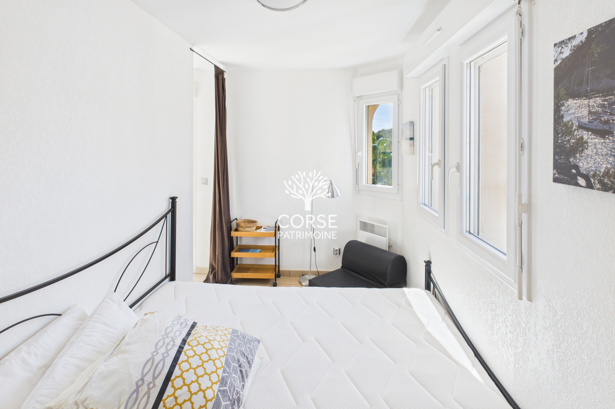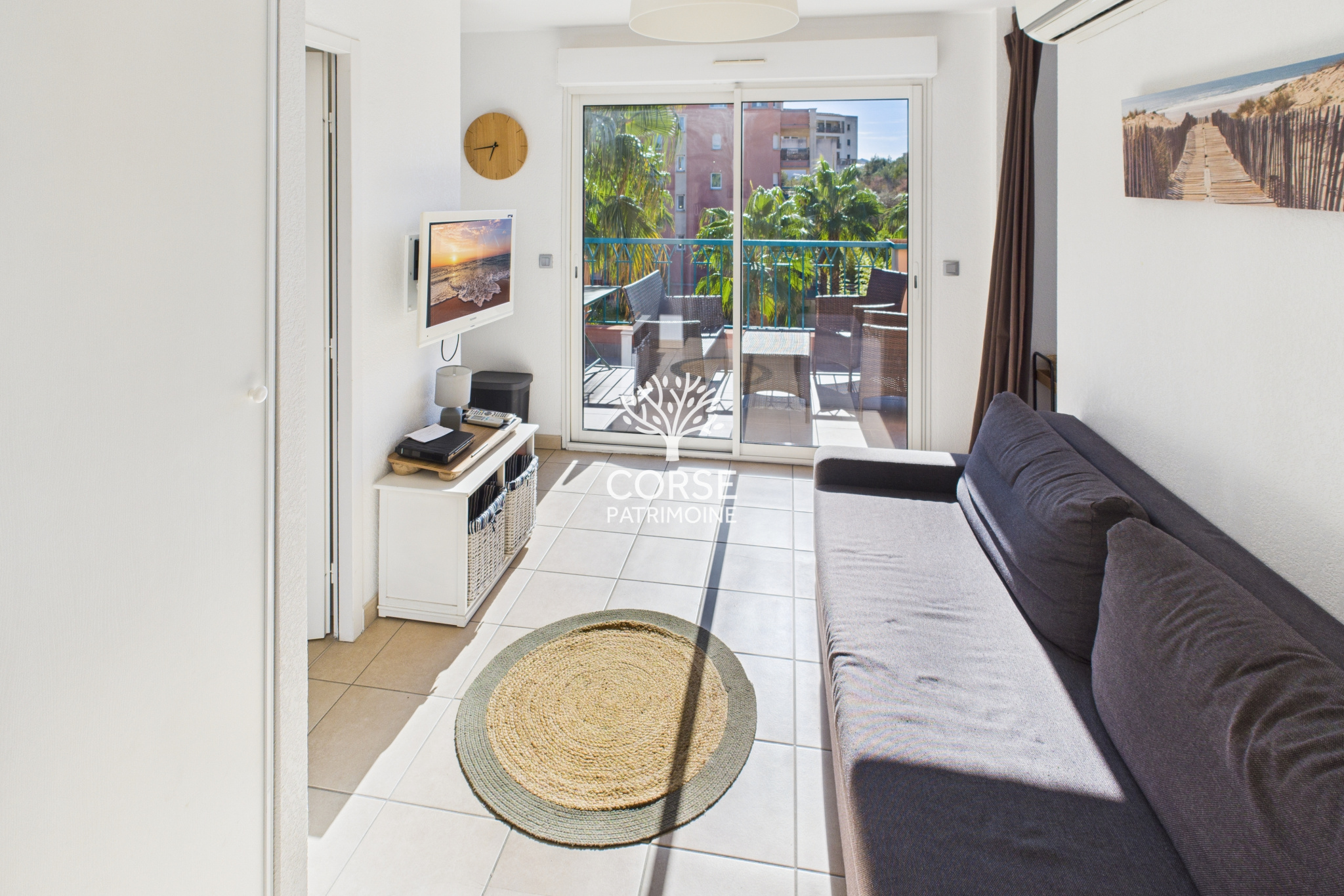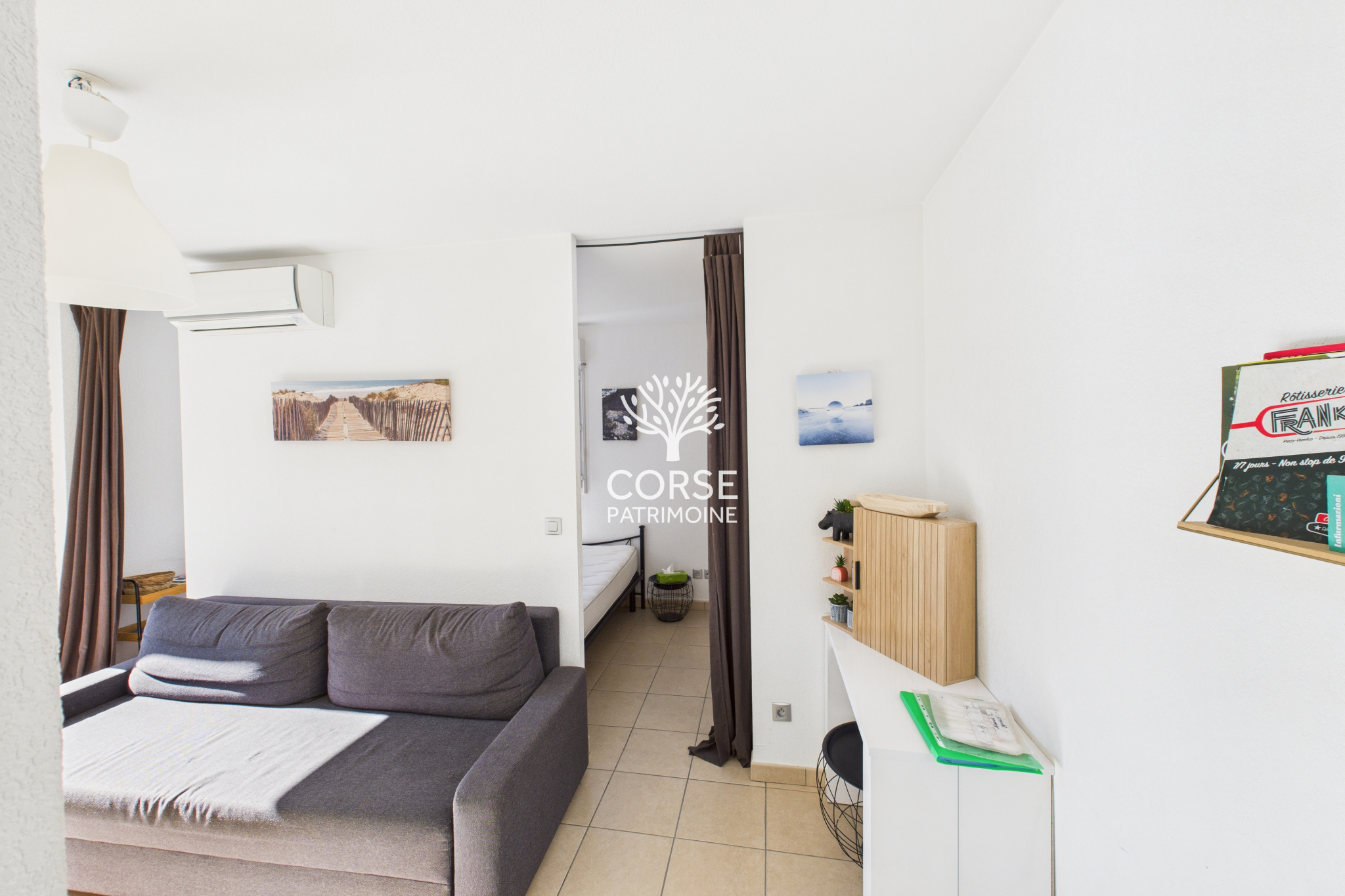 Corse patrimoine propose à la location annuelle un studio meublé dans une résidence sécurisée sans ascenseur avec piscine commune, sur le port de Porto-Vecchio.