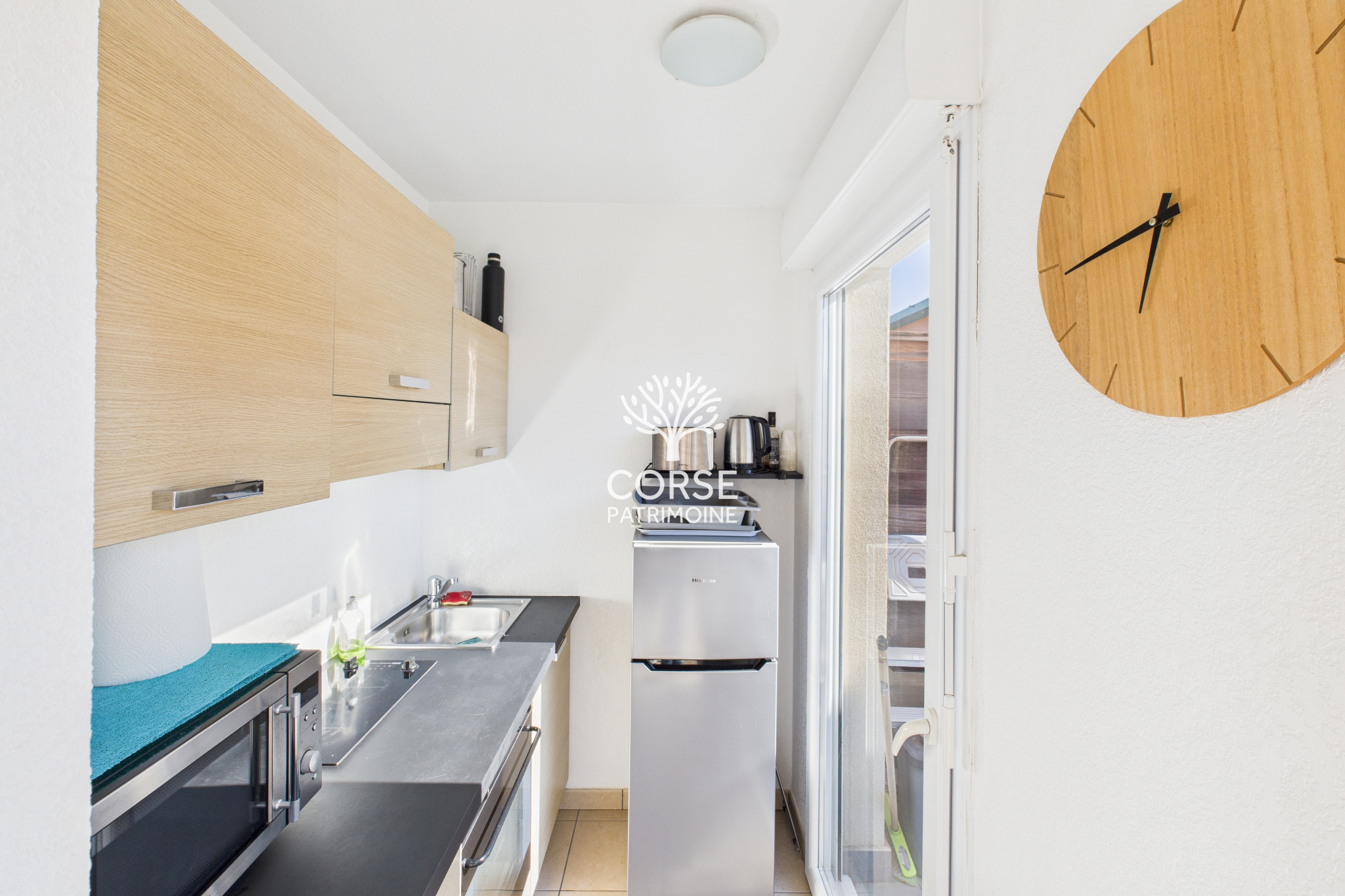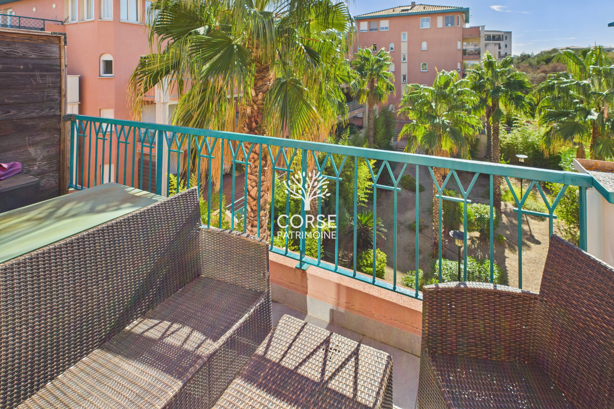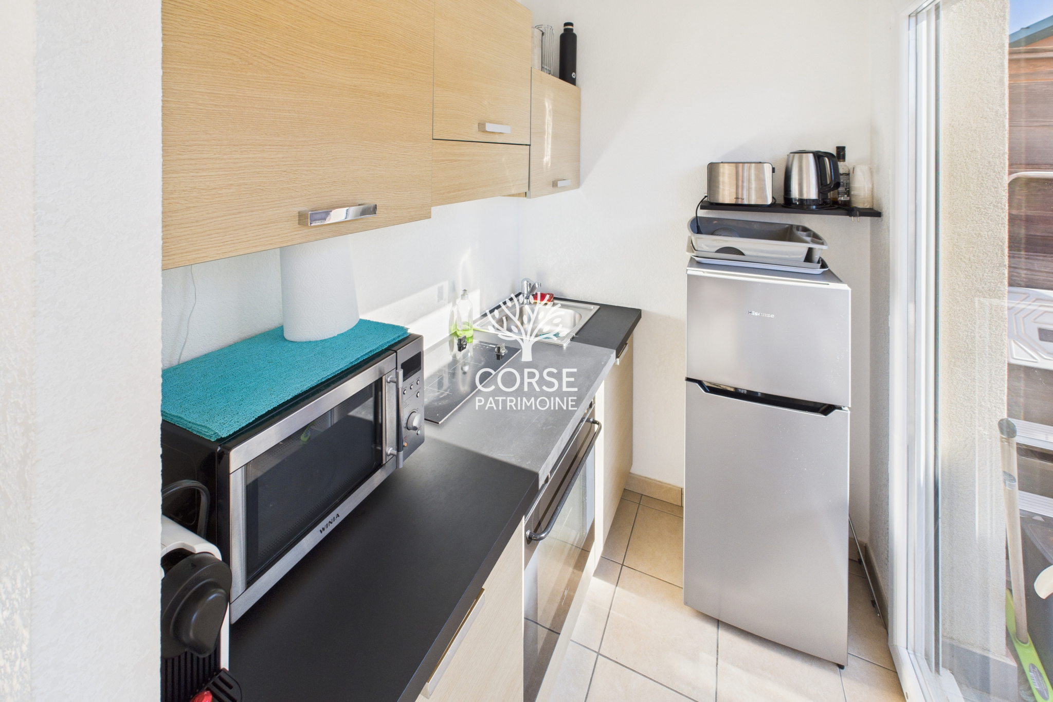Corse patrimoine propose à la location annuelle un studio meublé dans une résidence sécurisée sans ascenseur avec piscine commune, sur le port de Porto-Vecchio.