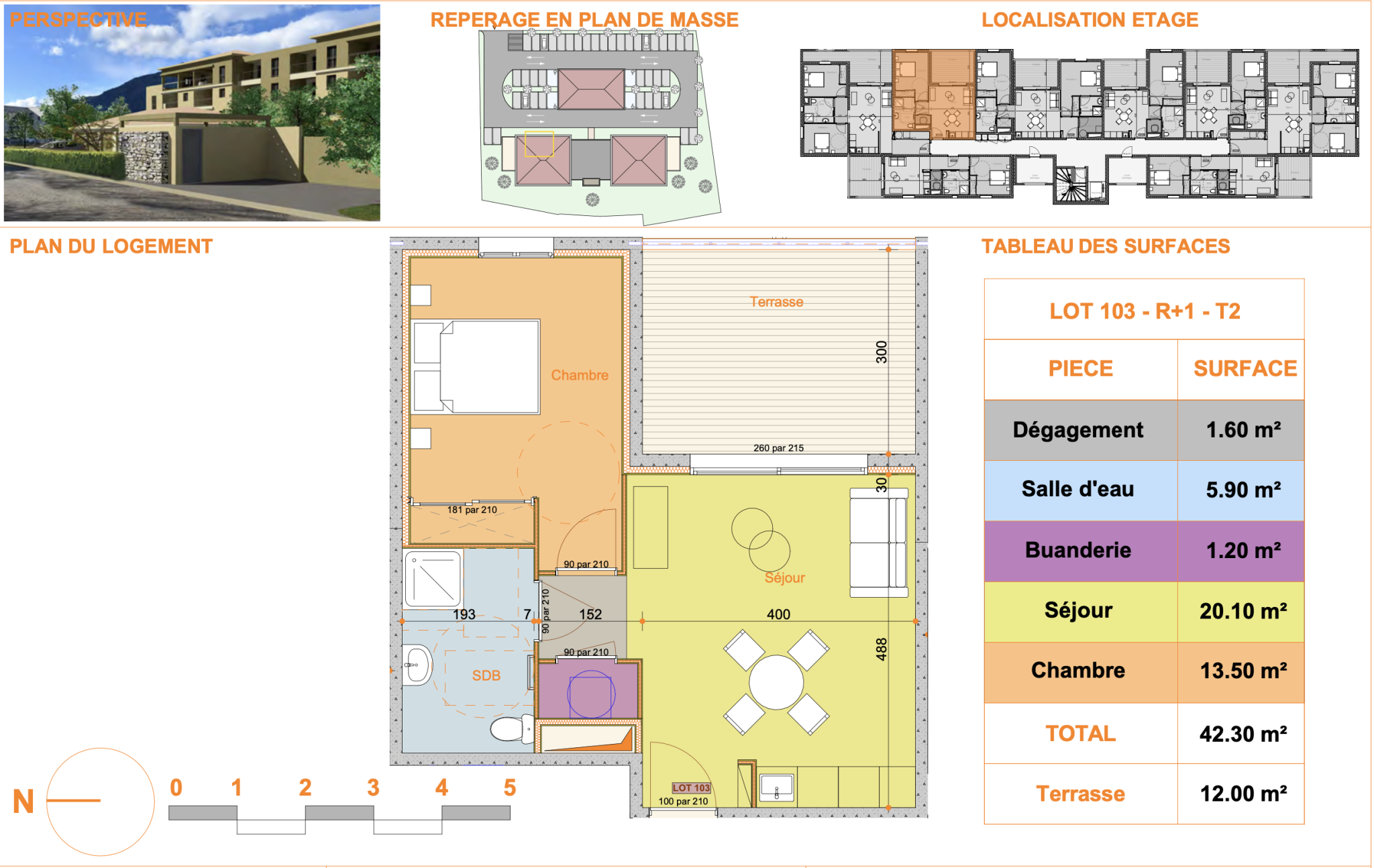 Cet appartement de 42,30 m2 vous séduira par ses volumes optimisés et sa terrasse de 12,00 m2, idéale pour profiter pleinement du climat méditerranéen et des soirées d’été.