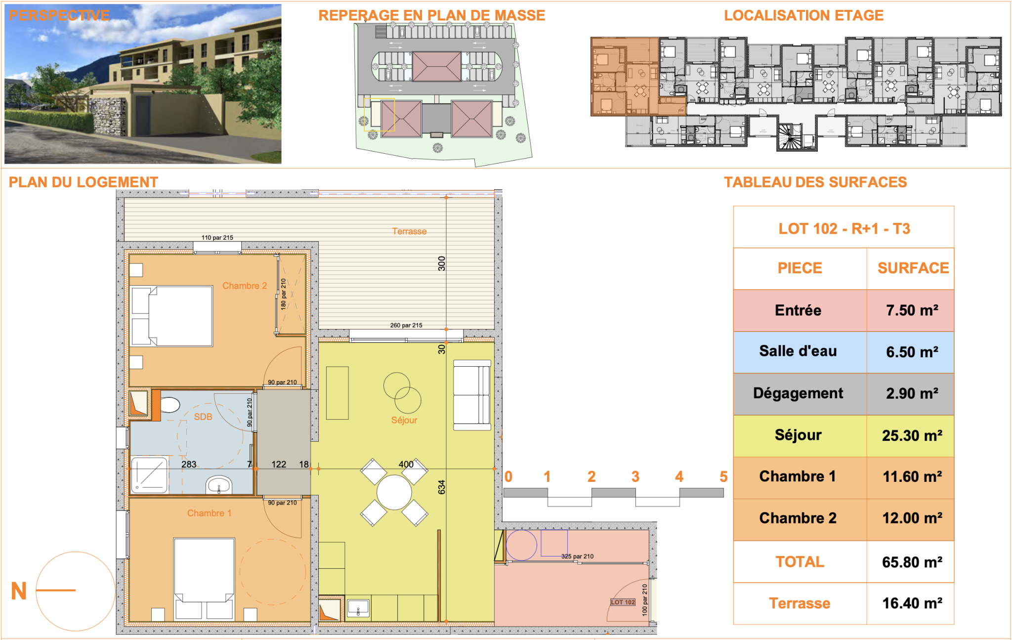 Cet appartement de 65,80 m2 vous séduira par ses volumes optimisés et sa terrasse de 16,40 m2, idéale pour profiter pleinement du climat méditerranéen et des soirées d’été.