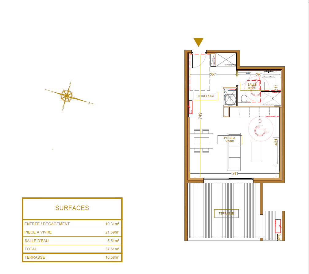 D’une superficie généreuse de 37.48 m2, ce bien se compose d’une pièce de vie lumineuse ouvrant sur une terrasse de 16.69 m2 avec vue mer ainsi que d’une salle d’eau avec WC.