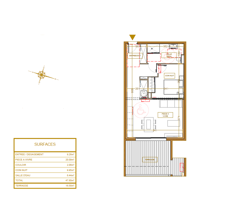 D’une superficie généreuse de 47.89 m2, ce bien se compose d’une pièce de vie lumineuse ouvrant sur une terrasse de 16.69 m2 avec vue mer ainsi que d’une salle d’eau avec WC.