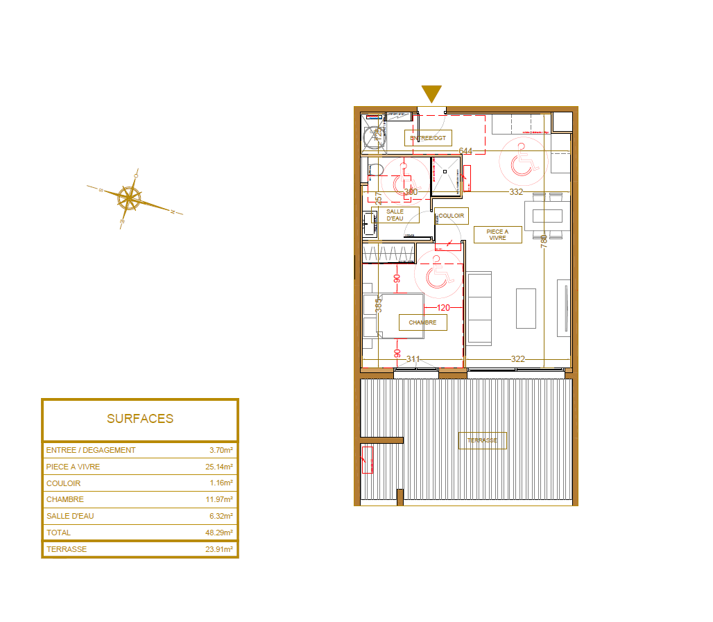 D’une superficie généreuse de 48.33 m2, ce bien se compose d’une pièce de vie lumineuse ouvrant sur une terrasse avec vue mer, une chambre, ainsi que d’une salle d’eau avec WC.