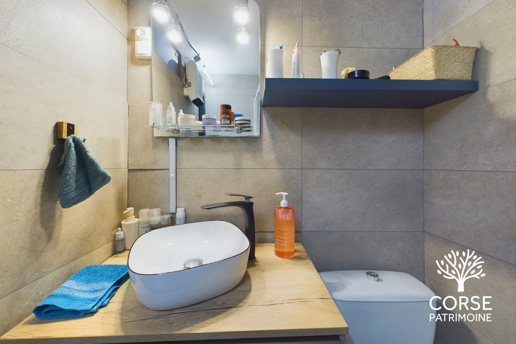 •Une salle de bain avec WC, rénovée avec goût.