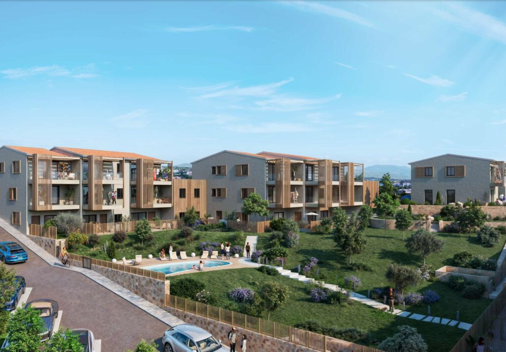 Sur les hauteurs du centre historique, en position dominante du golfe de Propriano, à quelques pas du port et proche de toutes les commodités, découvrez cette résidence de 30 lots répartis dans 3 bâtiments agencés autour d’un parc paysagé et d’une piscine.