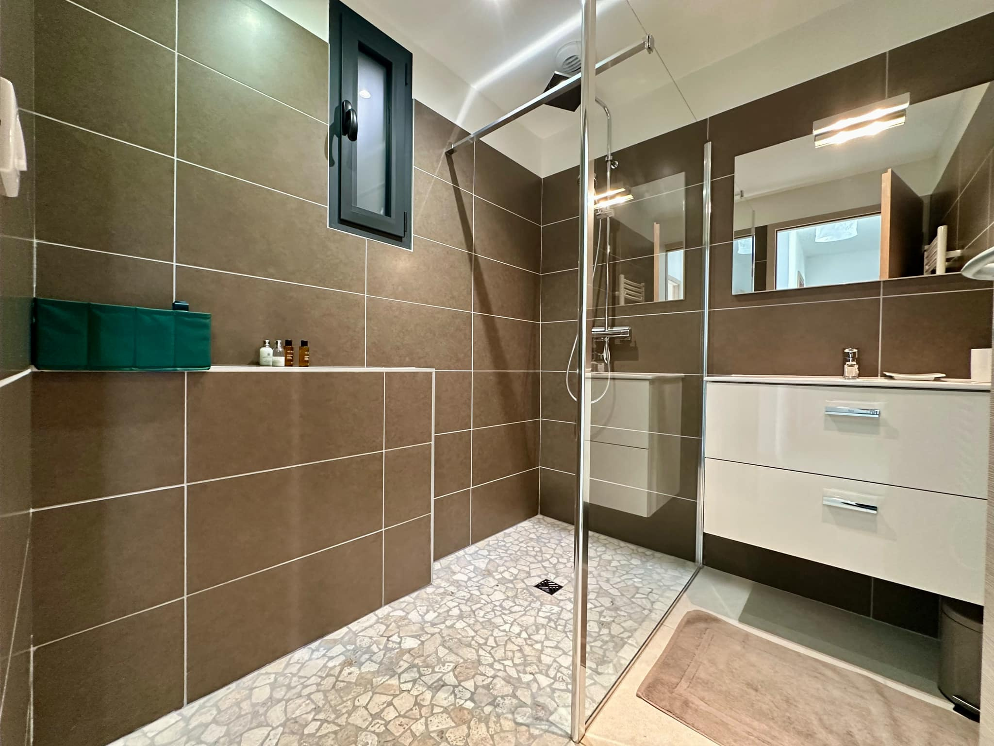 Ce bel appartement se compose d’un espace de vie agréable et aéré, un salon, salle à manger et cuisine aménagée, avec des grandes baies vitrées offrant une luminosité exceptionnelle. Côté nuit, deux chambres avec rangements et accès direct à une superbe terrasse en bois de 75 m2 qui fait le tour complet de l’appartement, idéale pour profiter des beaux jours. Une salle d’eau, et un WC indépendant.