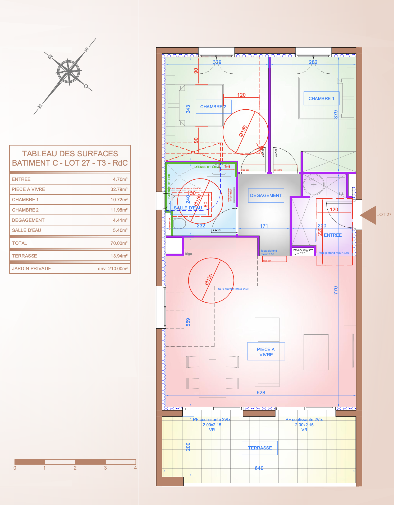 Situé au rez-de-chaussée, le bien bénéficie d’un jardin de 210 m2.