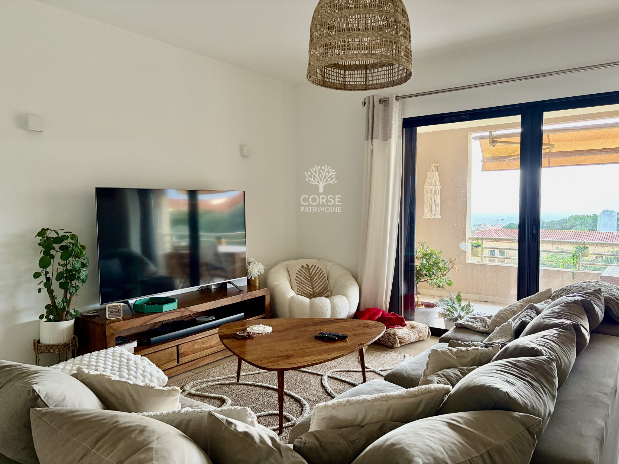 CORSE PATRIMOINE IMMOBILIER a sélectionné au sein d’une résidence calme et prisée, ce superbe appartement avec vue mer, bénéficiant d’une exposition Ouest idéale, offrant une luminosité remarquable et de magnifiques couchers de soleil.