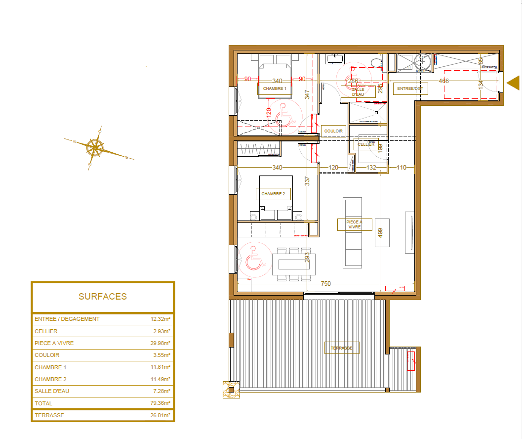 D’une superficie généreuse de 79.46 m2, ce bien se compose d’une pièce de vie lumineuse ouvrant sur une terrasse de 26.01 m2 avec vue mer, deux chambres, ainsi que d’une salle d’eau avec WC.
