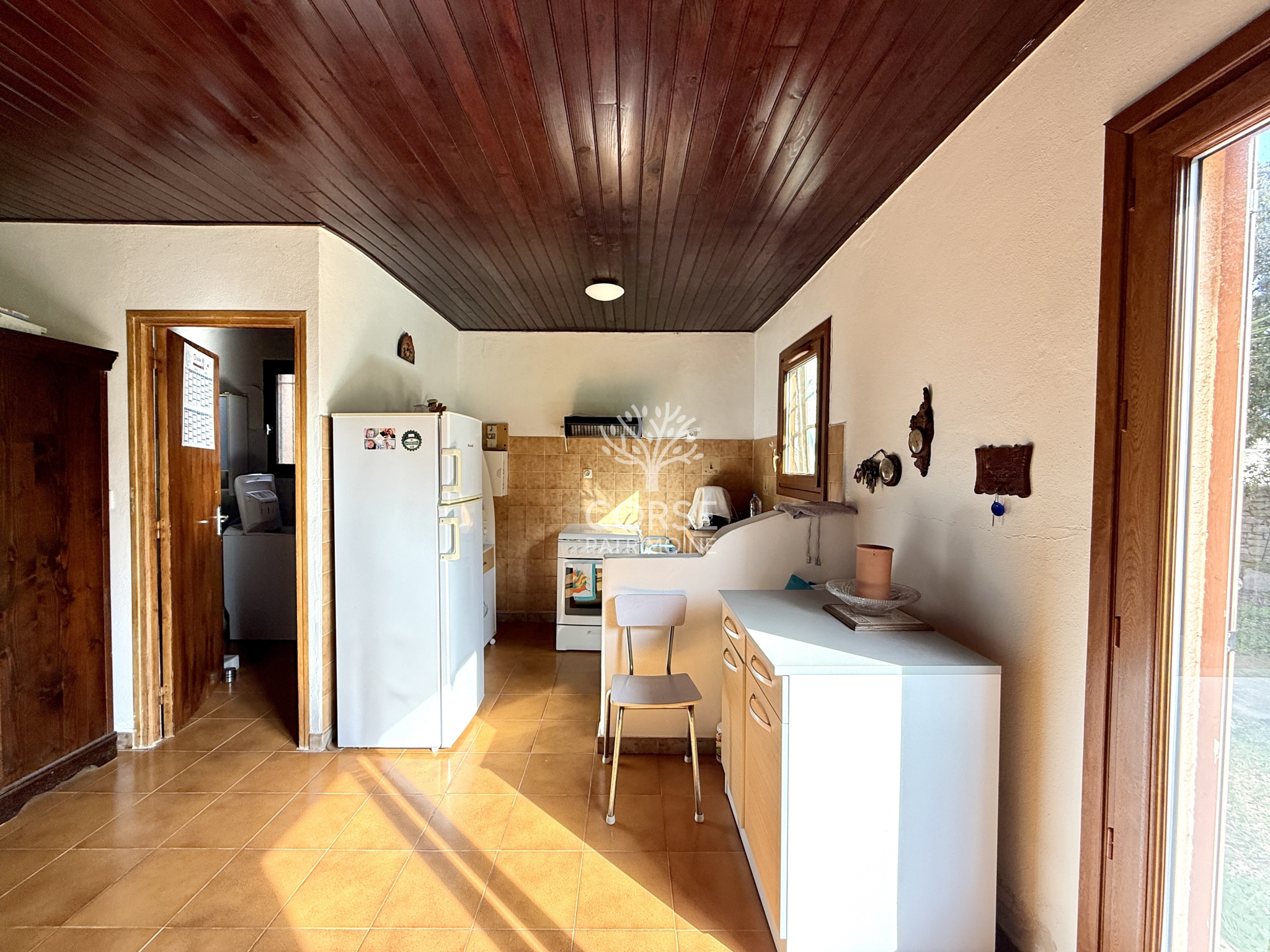 Corse Patrimoine Immobilier vous propose à la vente une maison individuelle dans un secteur de BONIFACIO, extrêmement calme. La maison, d’une superficie d’environ 100 m2 est sise sur une parcelle de 3629 m2. De plain pied, la maison dispose d’un beau séjour, avec coin cuisine. Le côté nuit offre trois chambres, ainsi que deux salles d’eau. En extérieur, le terrain est entièrement clôt, et sans vis-à-vis. Un garage de 20 m2, complètement indépendant permet plus de rangements. La maison demande quelques travaux d’isolation et de rafraîchissement.