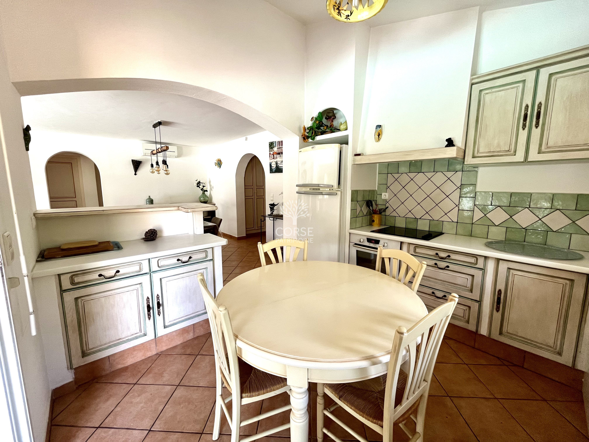 A découvrir, cette jolie maison en parfait état, de type T4, d’environ 103 m2, proche de Pinarellu. Au rez-de-chaussée, la villa se compose d’une entrée donnant sur une pièce de vie lumineuse avec cuisine aménagée et équipée, de 2 chambres, d’une salle d’eau et d’un WC. L’étage, pour sa part, dessert une grande suite parentale avec salle d’eau et terrasse privative avec vue sur la piscine, et un WC indépendant. Le terrain de 1 045 m2, clos et paysagé, dispose d’une grande piscine 5×10 au sel et d’un terrain de pétanque. Le bien est exposé Sud et se situe en plein coeur du village de Sainte Lucie en direction de Pinarello, ce qui lui confère une proximité immédiate à toutes les commodités et un accès à la plage en moins de 5 minutes en voiture. Parfait pour une famille ou pour un investissement locatif.