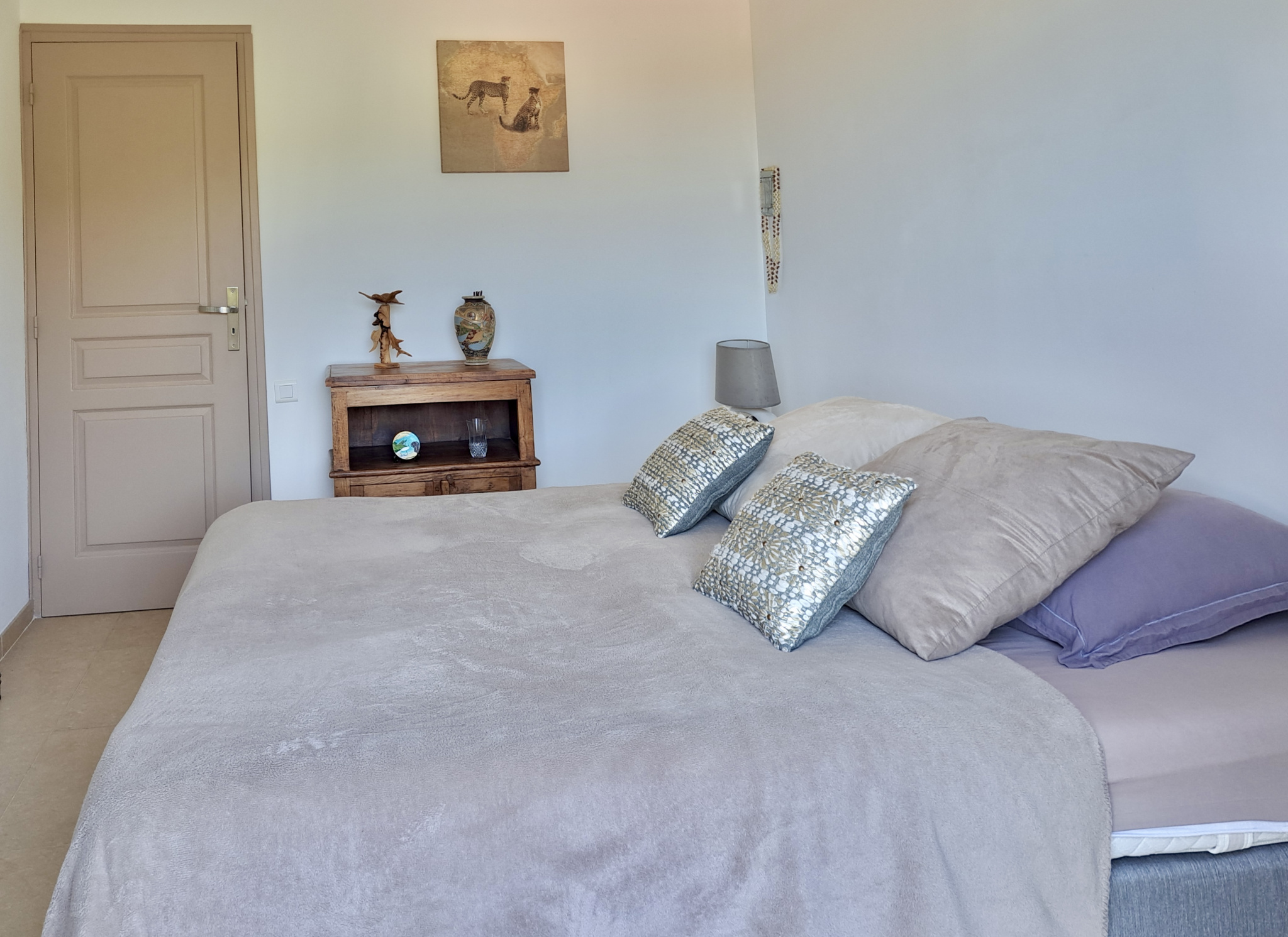Un dégagement dessert deux chambres lumineuses, toutes deux avec un accès direct à la terrasse, une salle d’eau, ainsi que deux toilettes indépendants pour plus de confort.
