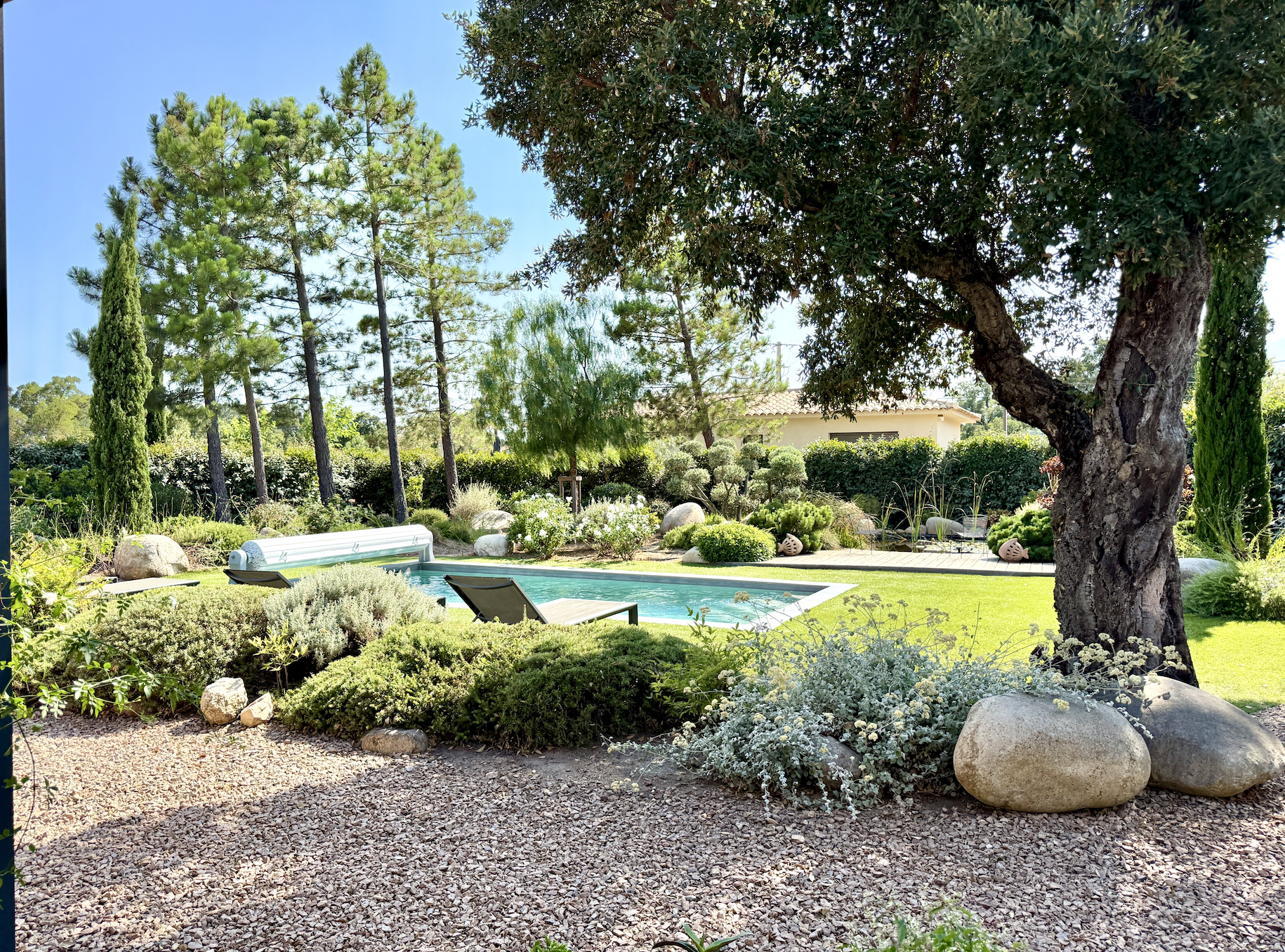 À l’extérieur, le terrain clos et joliment paysagé accueille une piscine 7×3, un bassin d’agrément, ainsi qu’un charmant bâtiment annexe faisant office de local technique/piscine et de cuisine d’été. Un cabanon de jardin de belle qualité vient compléter les prestations, avec en continuité un car-port pratique pour stationner votre véhicule à l’abri.