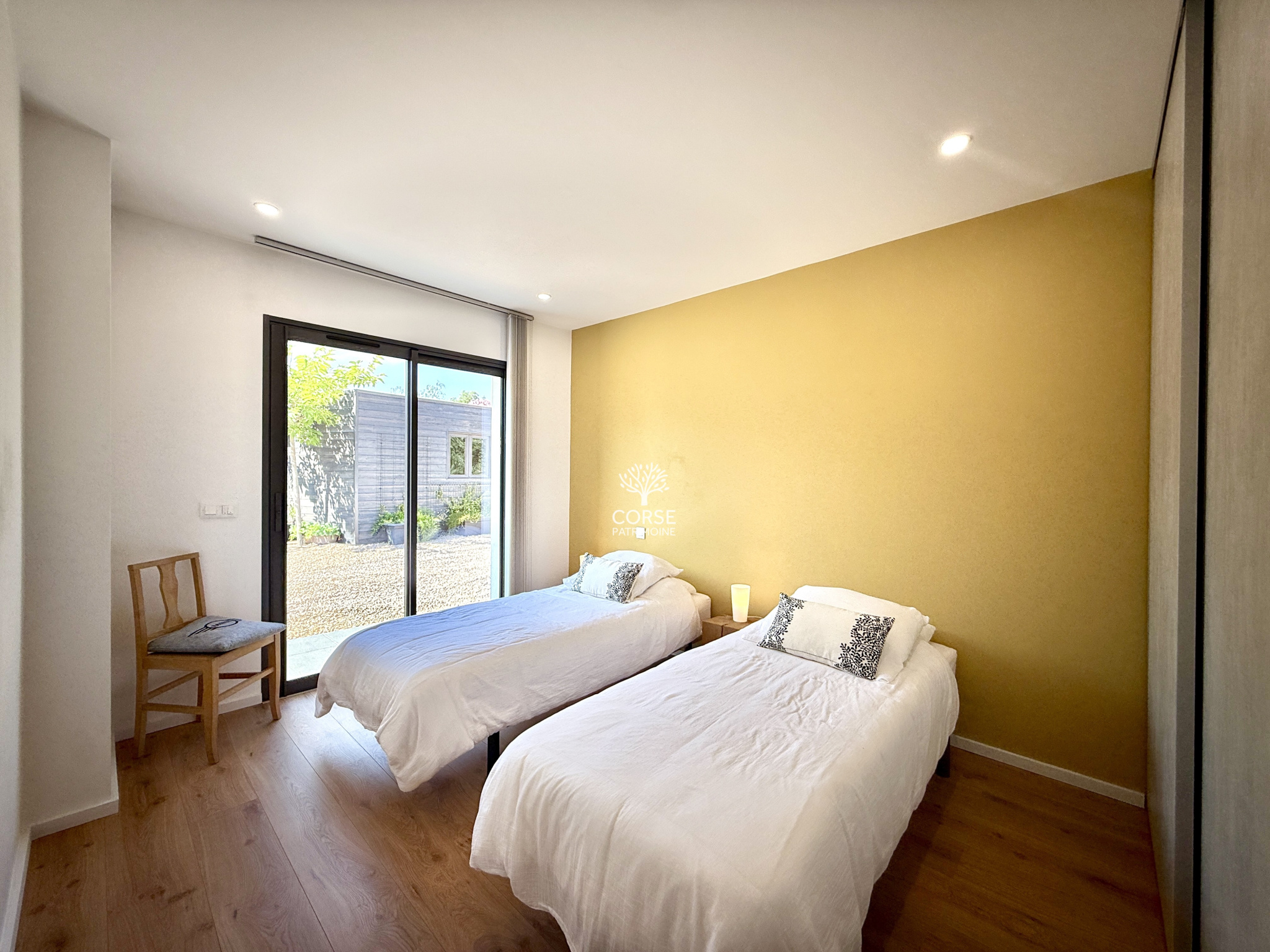 La partie nuit se compose de trois chambres, dont une véritable suite parentale avec sa propre salle d’eau. Les deux autres chambres disposent d’une seconde salle d’eau indépendante, parfaitement agencée. Un WC séparé complète cet espace.