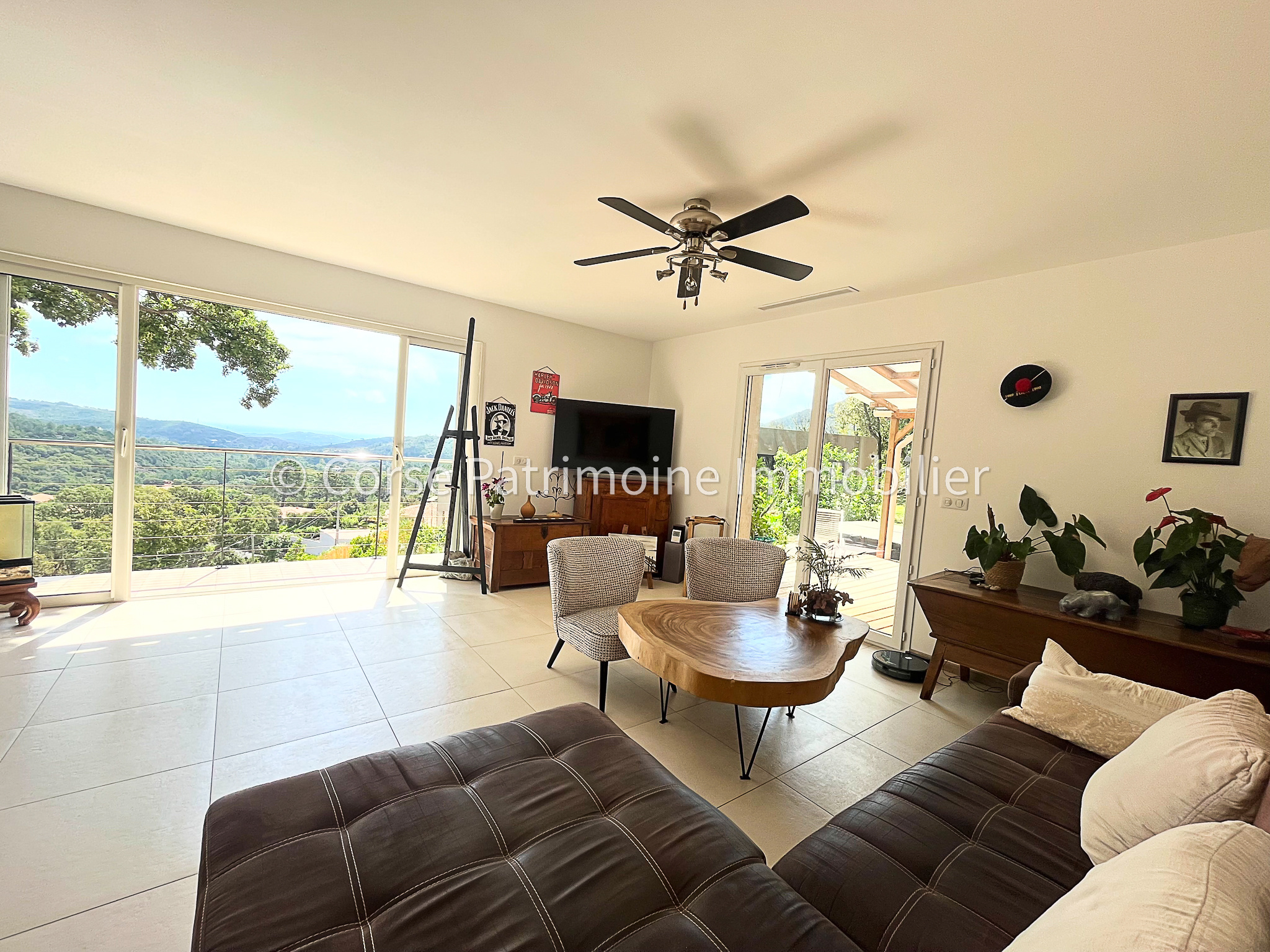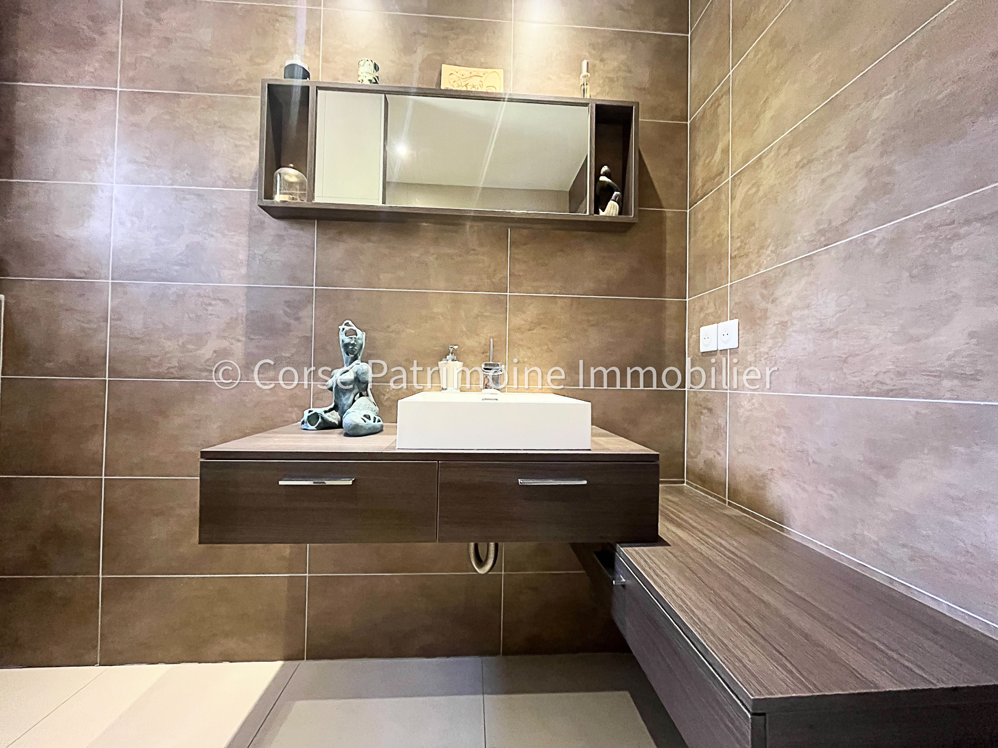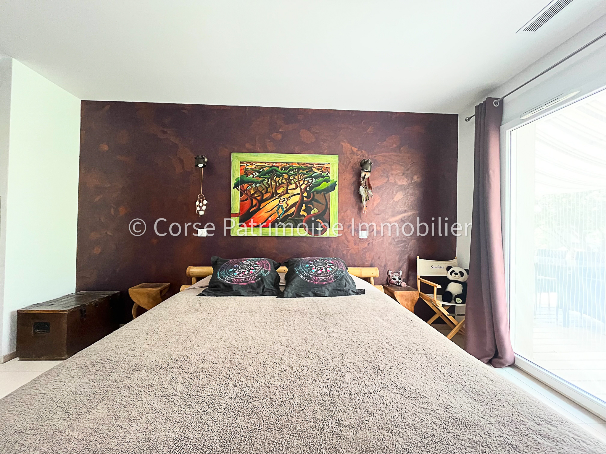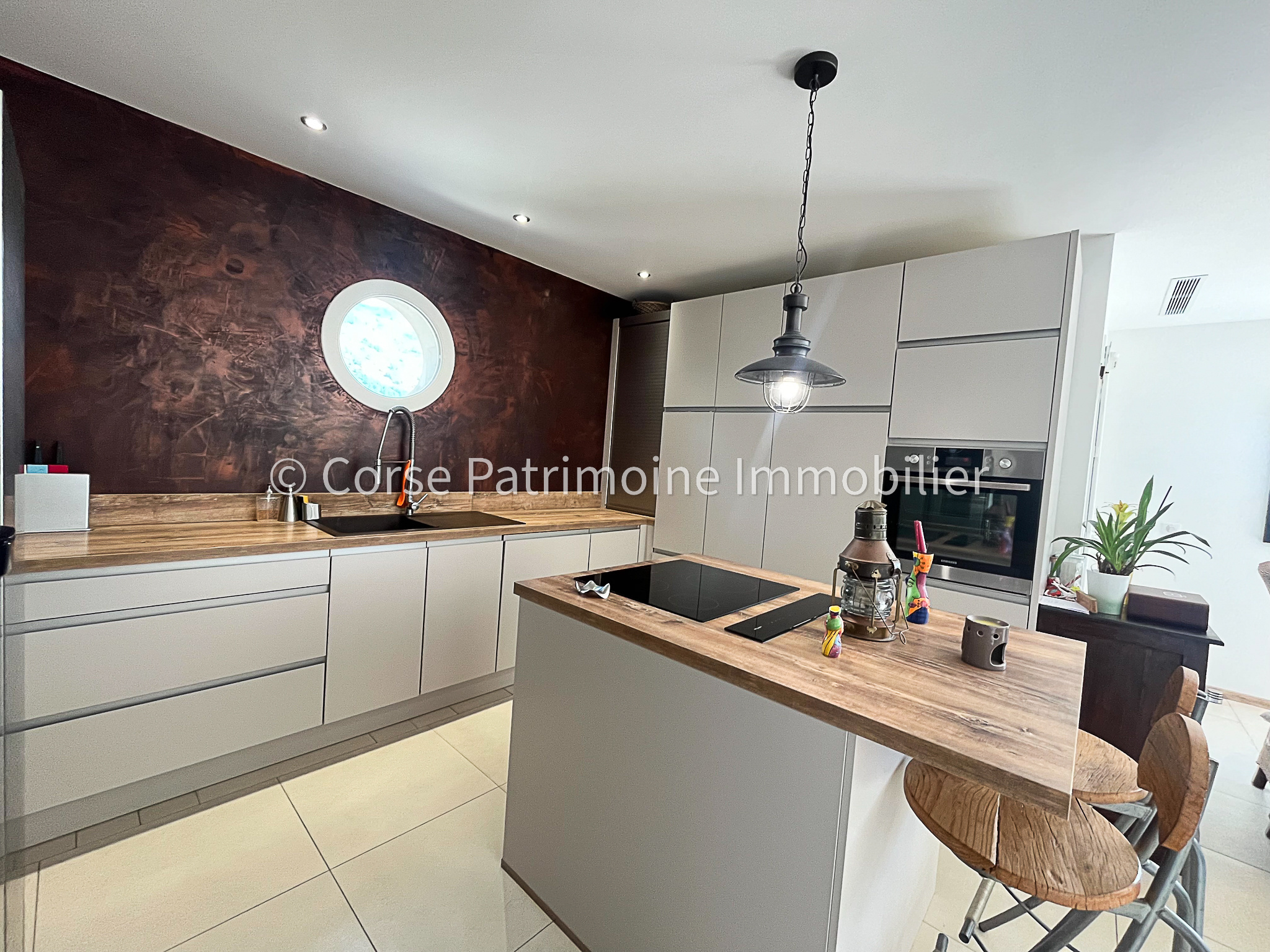 Corse Patrimoine Immobilier vous propose cette maison récente de 2015, située sur une magnifique parcelle arborée de 1406 m2, offrant une vue imprenable sur la mer et les montagnes. Cette demeure spacieuse, s’étendant sur deux niveaux, propose une surface habitable d’environ 127 m2. La maison principale se compose d’une cuisine entièrement équipée, ouverte sur une vaste pièce de vie de 34 m2, dotée d’un insert, créant une ambiance chaleureuse et conviviale. L’espace nuit dispose de 3 chambres, dont deux suites parentales avec salle de douche privative ainsi que d’une salle de douche supplémentaire pour plus de confort. Le niveau inférieur comprend un appartement récent de type 2, comprenant une chambre, une pièce de vie et une salle de douche, idéal pour recevoir des invités ou pour une location indépendante. Un garage d’environ 60 m2 attenant à la bâtisse offre un espace de rangement supplementaire ainsi qu’un carport. L’extérieur de la propriété est tout aussi séduisant avec son terrain arboré et son jacuzzi, parfait pour des moments de détente en plein air. Ne manquez pas cette opportunité unique d’acquérir une maison alliant modernité et confort, dans un cadre exceptionnel. Les informations sur les risques naturels auxquels ce bien est exposé sont disponibles sur le site Géorisques : www.georisques.gouv.fr
