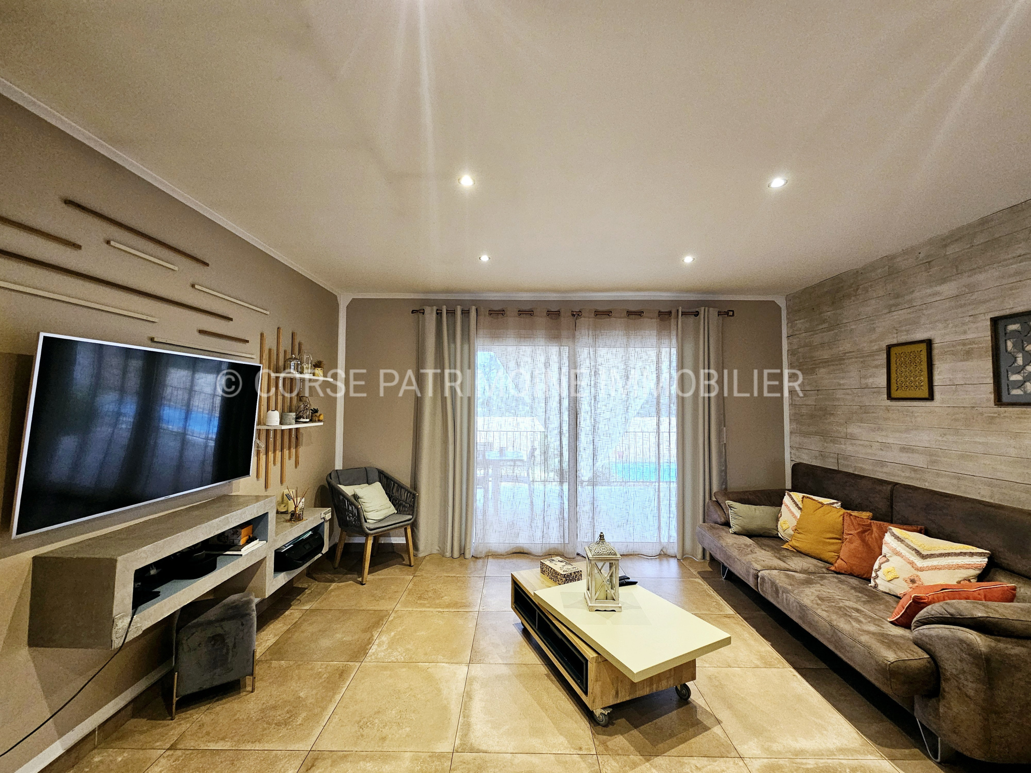 Une terrasse couverte de 32 m2 complète cet espace, offrant un agréable lieu de vie extérieur.