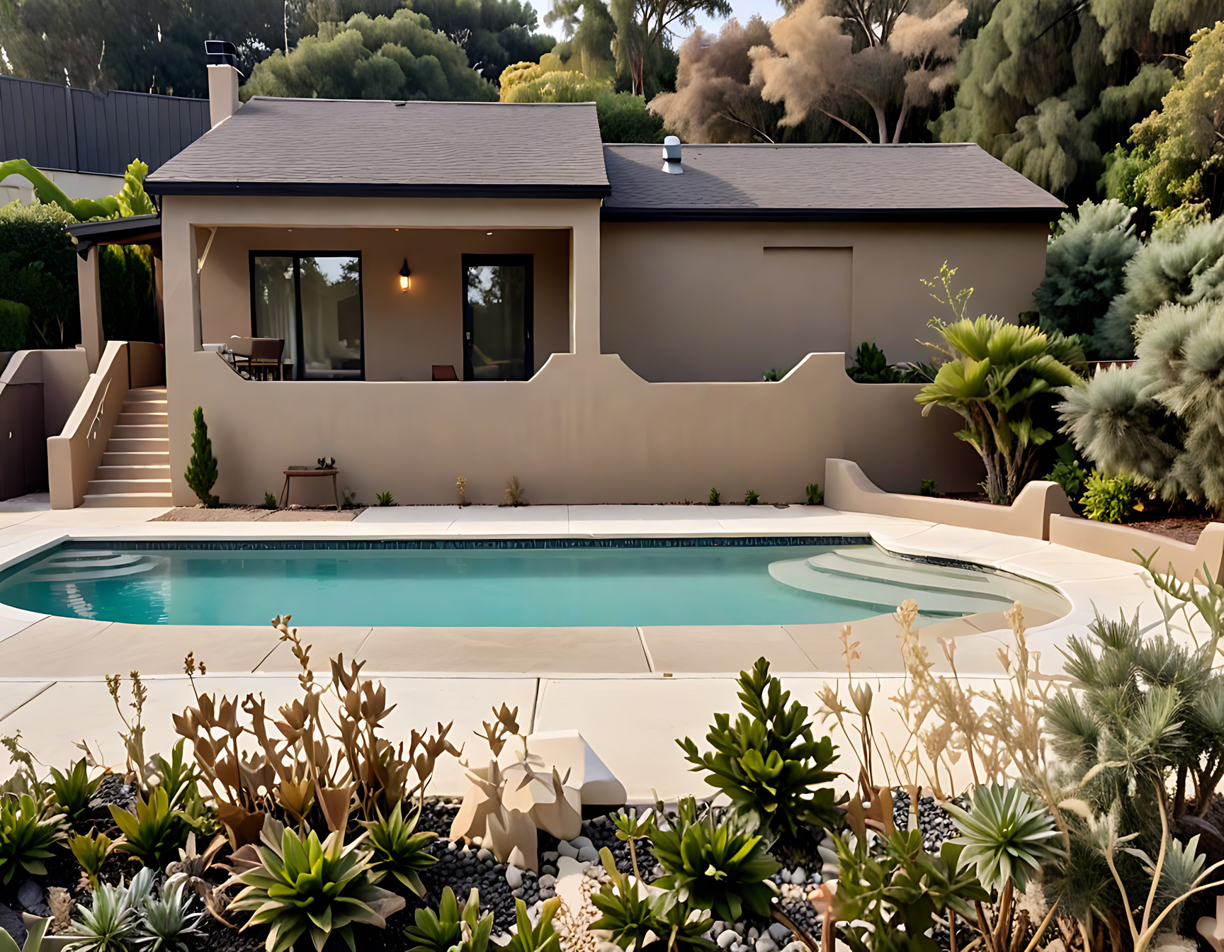 À l’étage, vous trouverez un logement de type 4 composé de trois chambres, d’une salle de bain commune, d’un WC indépendant, ainsi que d’une cuisine semi-ouverte donnant sur une spacieuse pièce de vie. Cette dernière s’ouvre sur une grande terrasse avec piscine, offrant une vue imprenable sur la mer.