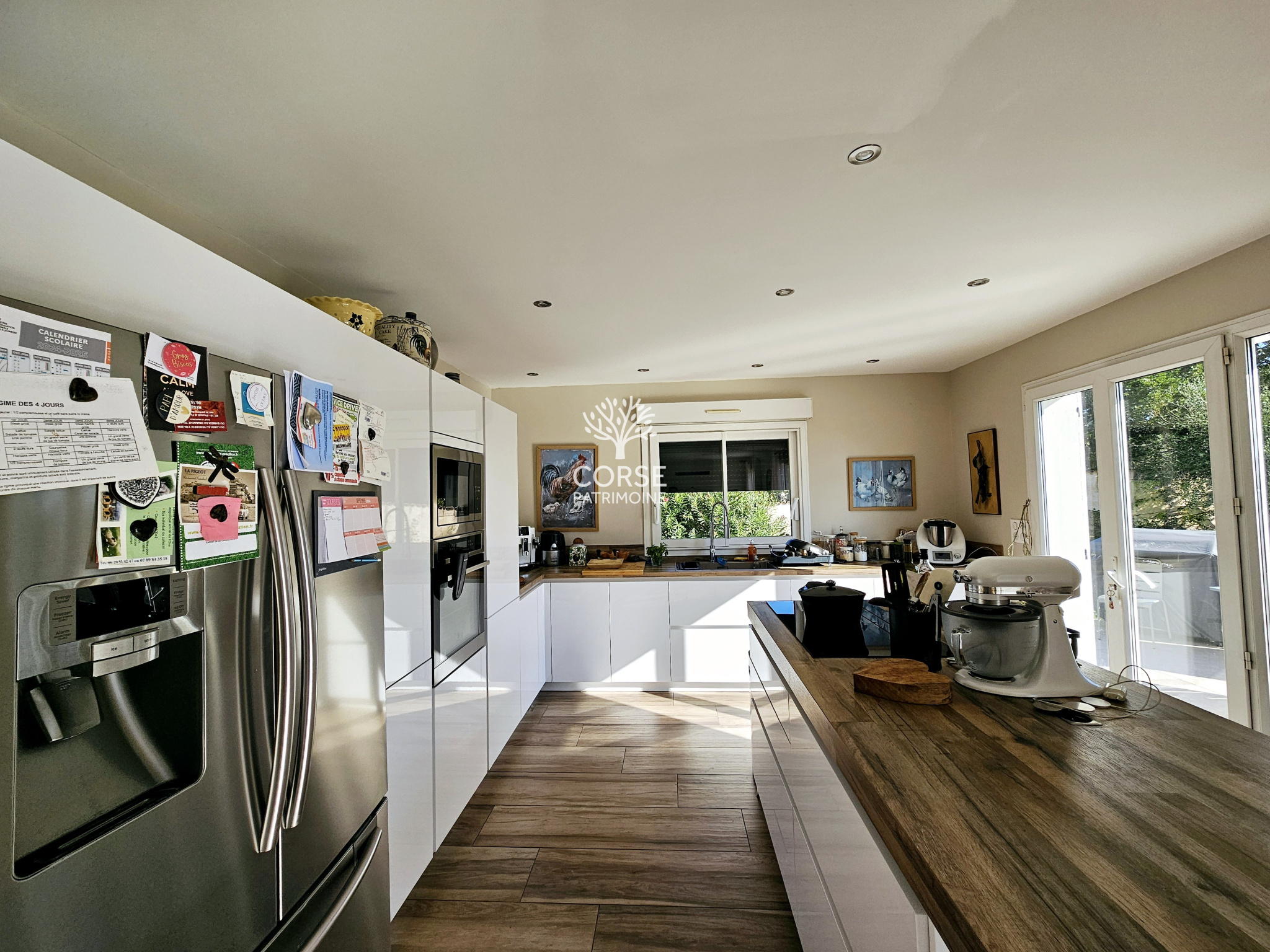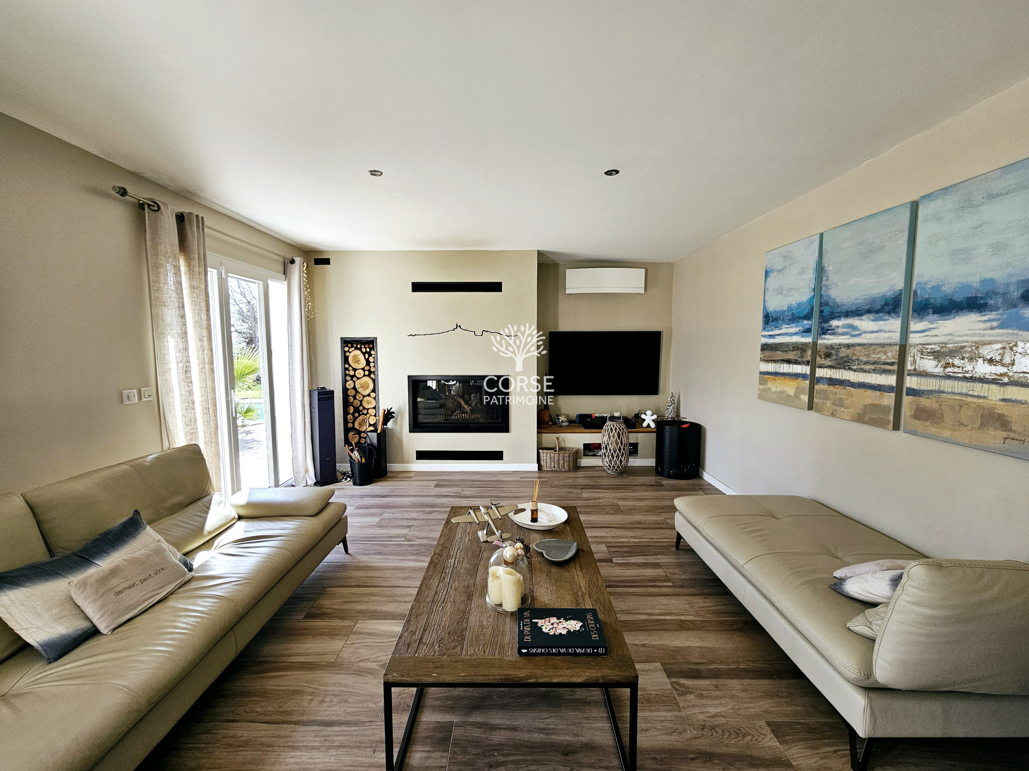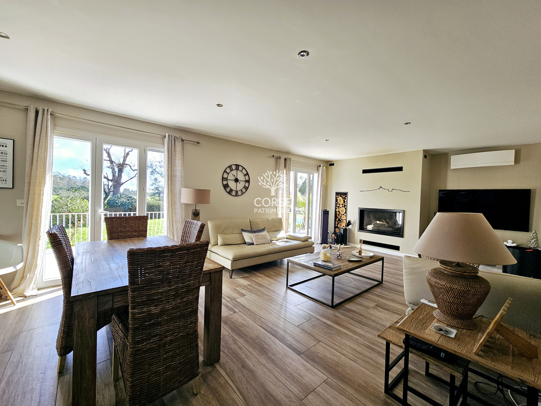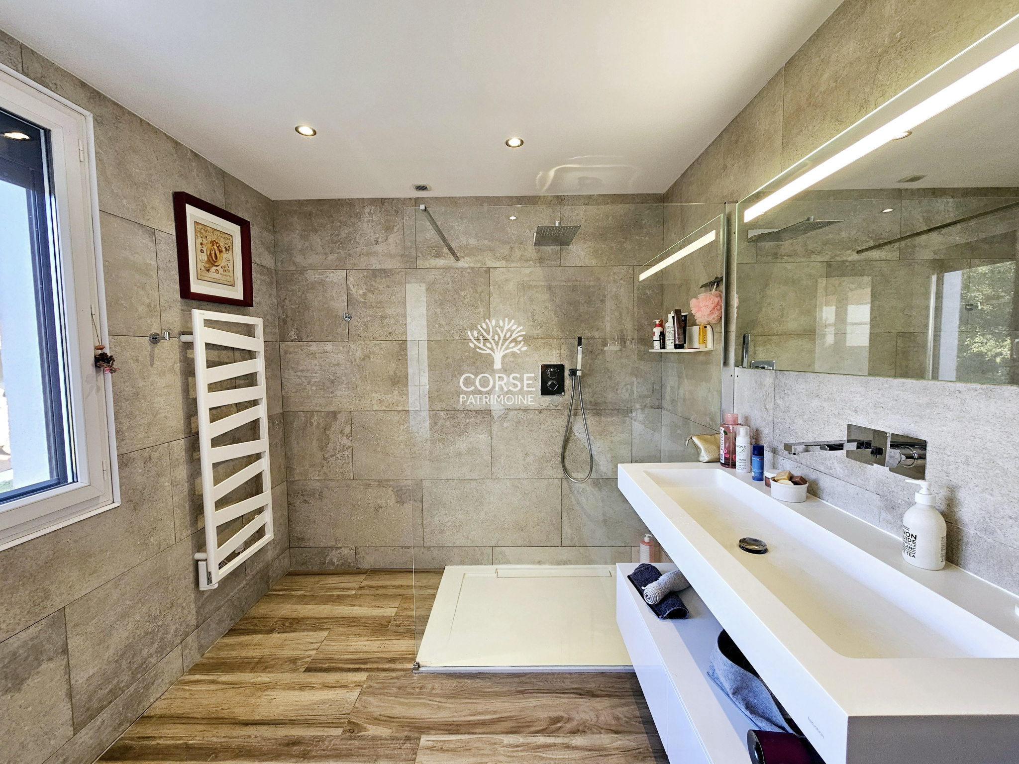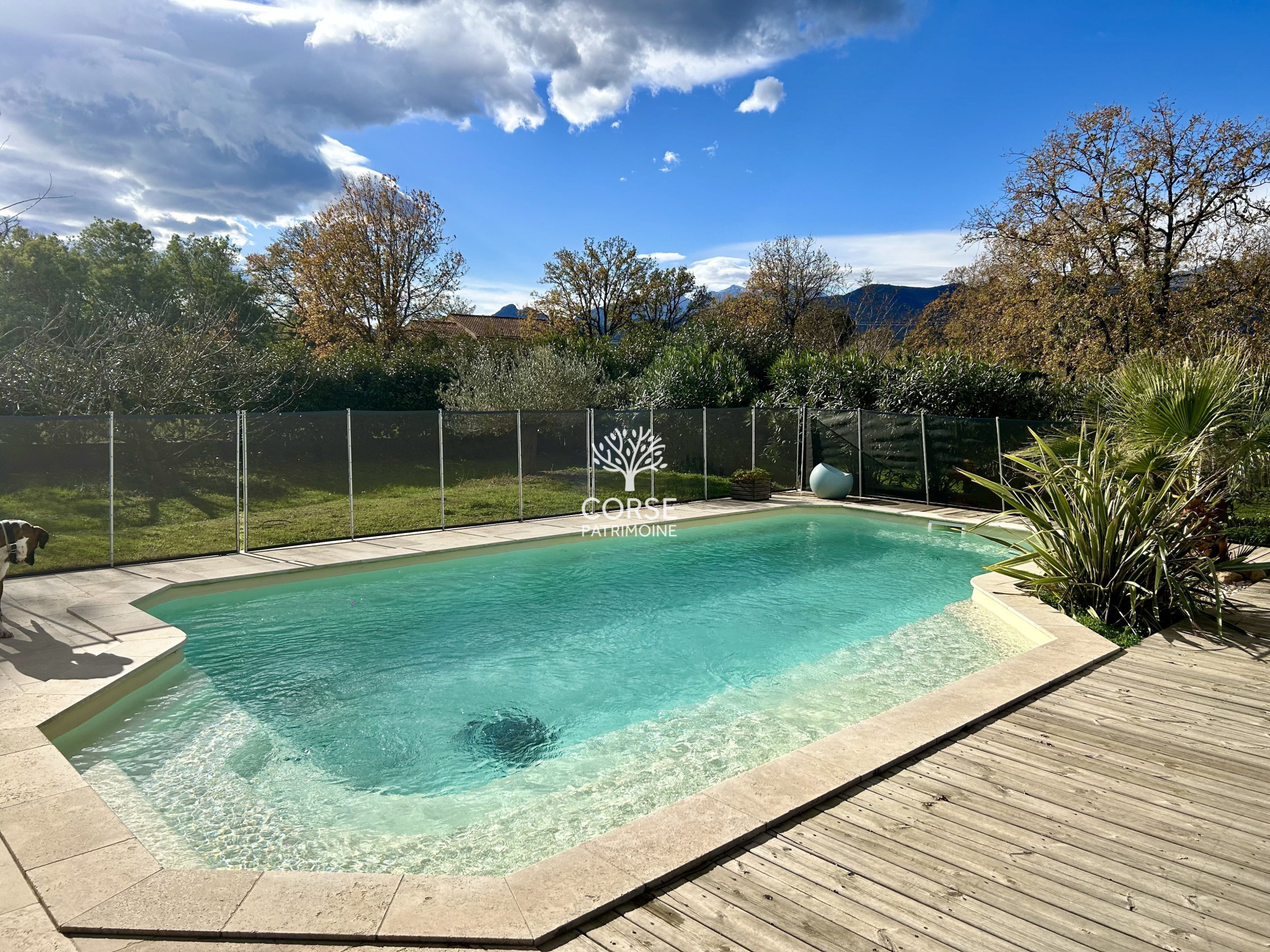À l’extérieur, une piscine au sel (9×4) entourée de travertin et bois, avec douche solaire, invite à la détente dans un cadre raffiné. Un garage, un carport avec borne de recharge pour voiture électrique, ainsi qu’un portail motorisé avec visiophone assurent confort et sécurité. La propriété est également équipée de climatisation réversible dans chaque pièce, de volets roulants solaires motorisés et de moustiquaires.