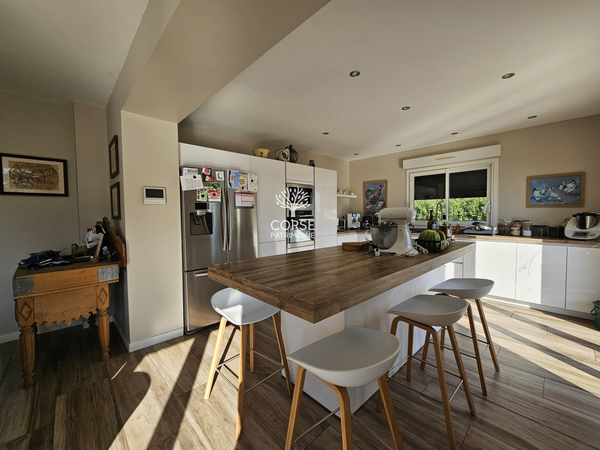 Édifiée sur un terrain généreux de 2 440 m2, la propriété se distingue par son environnement naturel tout en restant proche des centres de vie. Dès l’entrée, vous serez séduit par ses volumes généreux et ses prestations de qualité. Le rez-de-chaussée s’ouvre sur une entrée spacieuse avec placards aménagés et un espace bureau fonctionnel. La pièce de vie lumineuse, agrémentée d’un insert à bois, s’accompagne d’une cuisine ouverte entièrement équipée, le tout donnant sur une vaste terrasse de 50 m2 orientée Est, idéale pour vos moments de détente, protégée par un store banne motorisé. Vous y trouverez également une grande chambre avec placard, une salle d’eau contemporaine, une buanderie pratique, ainsi qu’un WC suspendu indépendant.