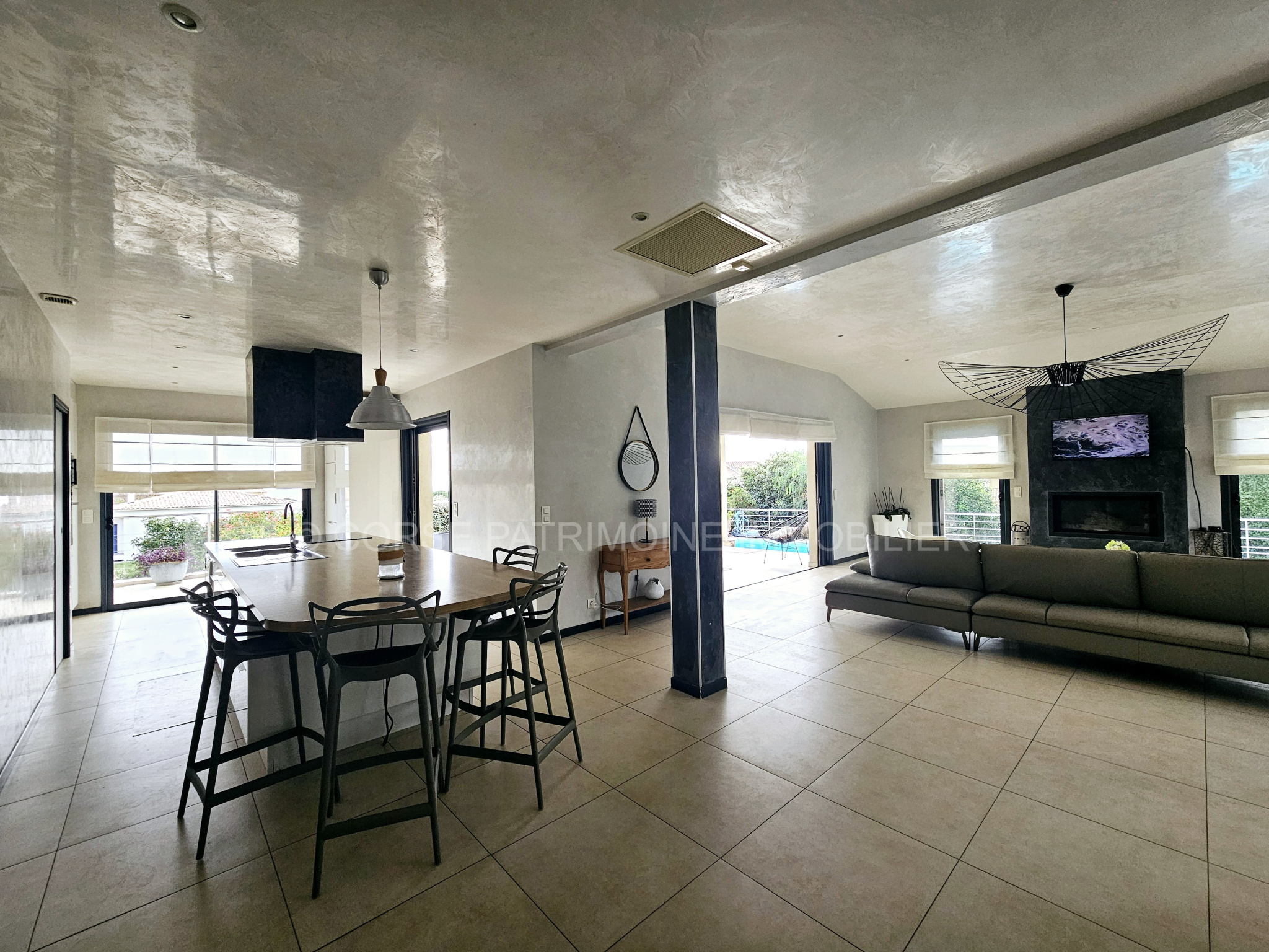 Située dans un quartier résidentiel calme, à seulement 5 minutes des écoles, des commerces et de la mer. Venez découvrir cette belle propriété composée d’une entrée avec placard, un wc indépendant, d’un vaste salon-séjour lumineux avec cheminée insert, offrant un accès direct à une grande terrasse avec une vue sur la mer et une piscine exposée Est/Ouest, idéale pour profiter du soleil tout au long de la journée. Une cuisine américaine entièrement équipée, avec un cellier attenant, vient compléter cet espace de vie. La villa dispose de 4 suites parentales, chacune dotée de sa propre salle d’eau avec WC et de grands placards intégrés. À l’extérieur, un garage de 55 m2, et des espaces fonctionnels comme un laboratoire, une cave et une buanderie offrent un maximum de praticité au quotidien. Le tout est implanté sur une parcelle arborée de 1 642 m2, garantissant un cadre de vie paisible et verdoyant. Cette villa, parfaitement située et aménagée, représente une opportunité rare pour les amateurs de tranquillité et de confort, tout en restant proche des commodités. Contactez-nous dès maintenant pour plus d’informations ou pour organiser une visite. Les informations sur les risques auxquels ce bien est exposé sont disponibles sur le site Géorisques : www.georisques.gouv.fr