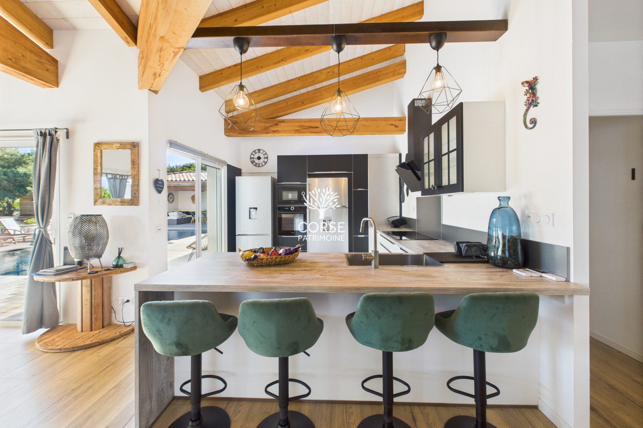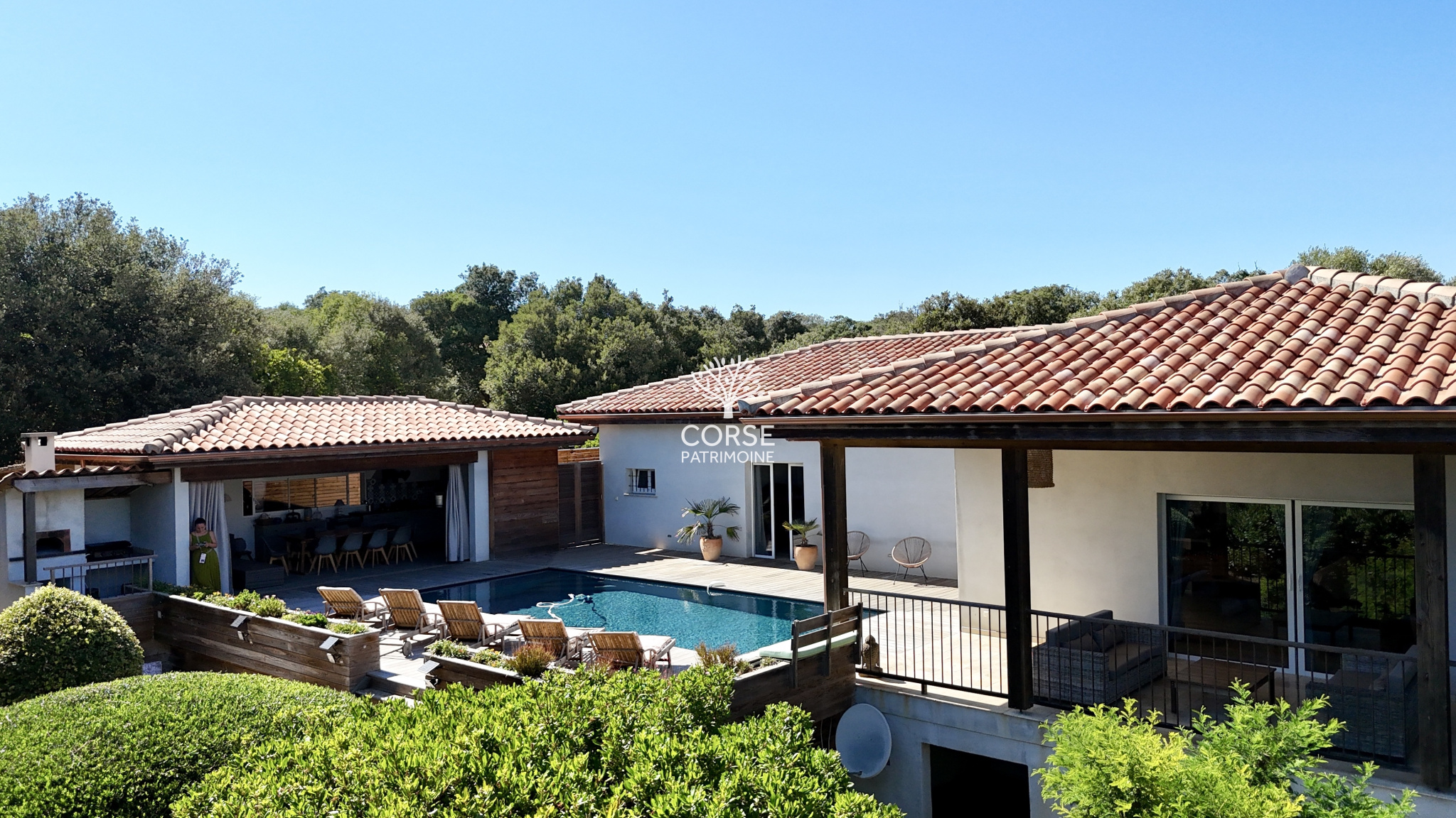 Corse Patrimoine Immobilier vous propose de découvrir cette somptueuse propriété de plus de 320 m2 habitables, sur un beau terrain paysagé et arboré entièrement clos et sécurisé de 3000 m2, aux portes de Bonifacio.