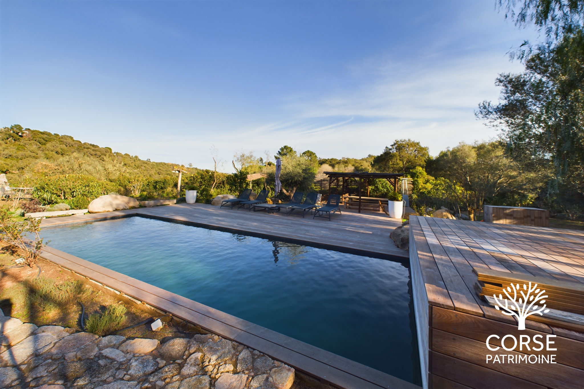 Proposée par Corse Patrimoine Immobilier, cette superbe villa de 350 m2, disposant de 4 suites et d’un dortoir, entièrement rénovée dans un style résolument moderne, bénéficie d’un emplacement idéal à 15 minutes de Porto-Vecchio et à proximité de la magnifique plage de Pinarellu. Dès votre arrivée, un grand portail s’ouvre sur l’allée menant au garage, tandis que la piscine extérieure et un espace paysager doté d’un jacuzzi complètent harmonieusement l’ensemble.