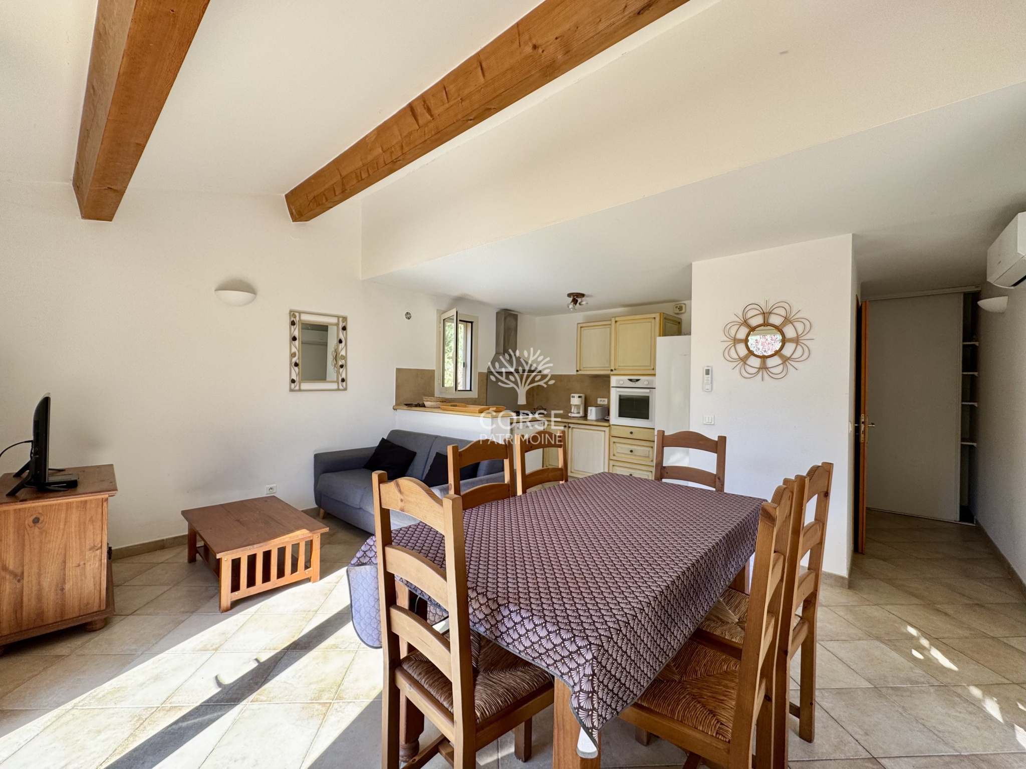 Venez découvrir en EXCLUSIVITÉ, cette mini villa d’environ 73 m2, située dans une résidence familiale de seulement 9 lots, offrant un cadre de vie paisible. Sur la prestigieuse route de Palombaggia, l’emplacement est privilégié à seulement 5 minutes de la mer. Vous profiterez ainsi des plus belles plages de la région, dans un secteur hautement prisé. En rez-de-chaussée, profitez d’un espace de vie lumineux et convivial, avec un séjour spacieux qui s’ouvre sur une cuisine entièrement équipée. Pour le coin nuit, une chambre disposant de sa propre salle d’eau, et de son WC indépendant. A l’étage, un espace nuit supplémentaire avec sa propre salle d’eau et un WC indépendant, offrant une configuration idéale pour les invités ou les membres de la famille. Pour les extérieurs, une terrasse offre une vue apaisante sur le jardin de la copropriété. La résidence est entourée d’une parc entièrement arboré.
