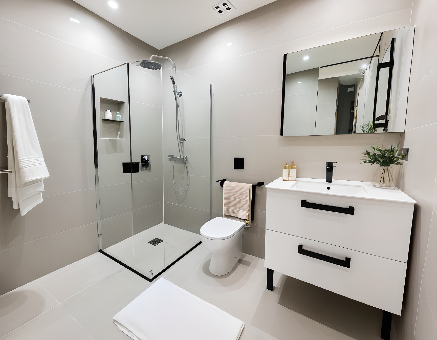 Prestations: normes RT 2012, climatisation réversible dans toutes les pièces, reliée à l’assainissement collectif.