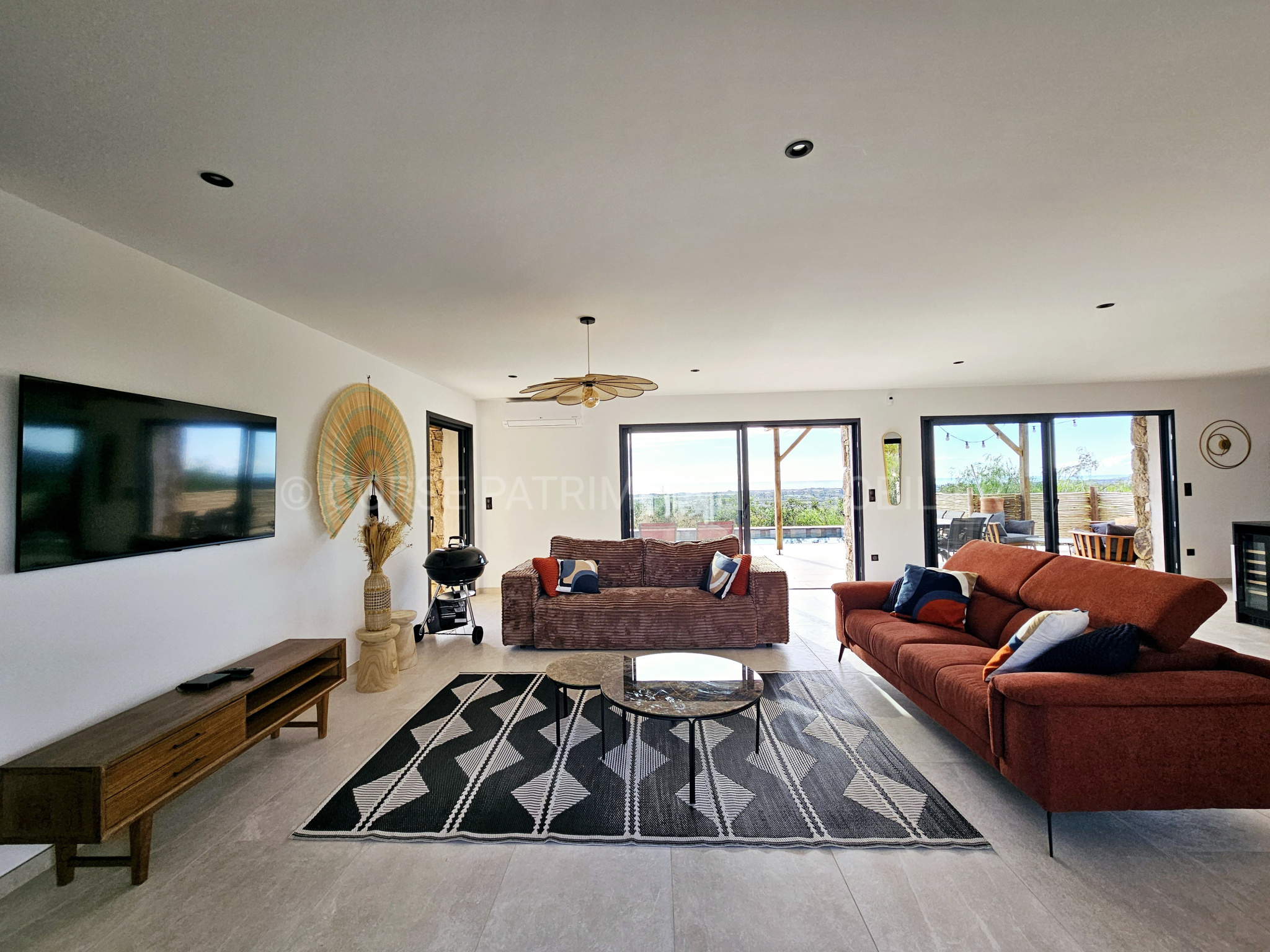 Découvrez cette propriété d’exception située à proximité de Solenzara et des plages magnifiques de la Corse-du-Sud. Cette bergerie, construite avec des matériaux de qualité, offre un cadre de vie exceptionnel avec une vue imprenable sur la mer. La pièce de vie spacieuse et lumineuse dispose d’une cuisine ouverte, aménagée et équipée avec des finitions élégantes. L’intérieur comprend trois suites, chacune disposant de sa propre salle d’eau ou salle de bains privative. Les chambres sont agrémentées de placards sur mesure, combinant raffinement et praticité. À l’extérieur, vous profiterez d’une piscine chauffée avec traitement au sel, idéale pour se détendre en admirant la vue sur la mer. De nombreuses plantes ont été soigneusement plantées autour de la propriété, et un système de goutte-à-goutte a été installé pour un entretien facile. La maison est équipée de la climatisation réversible dans chaque pièce, de menuiseries en aluminium, d’un portail électrique, d’une borne pour recharge de voiture électrique et d’un système d’alarme pour plus de sécurité. Cette bergerie est vendue entièrement meublée et équipée, vous permettant de bénéficier immédiatement de ce magnifique intérieur raffiné. Ne manquez pas cette opportunité unique !