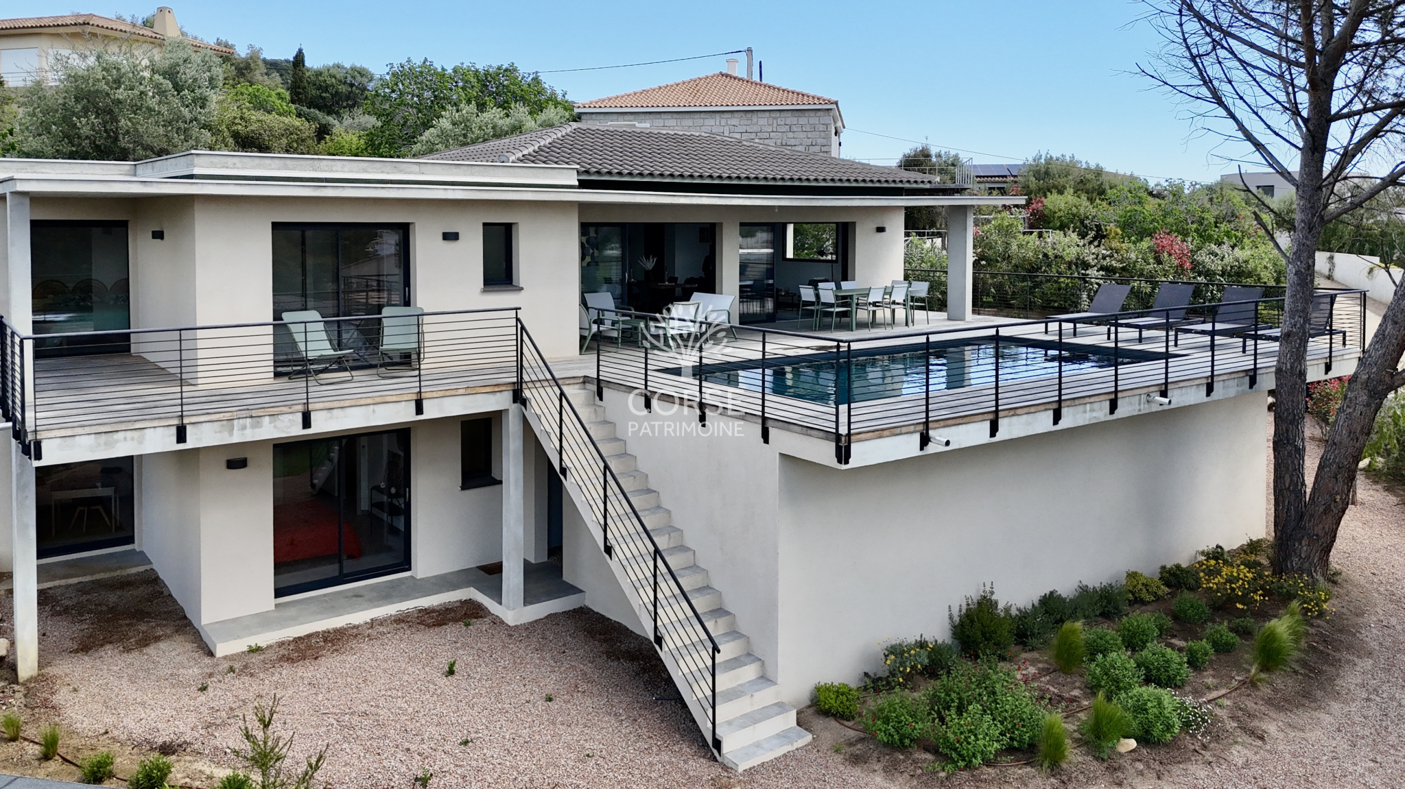 Entre les baies prisées de Pinarellu et Saint-Cyprien, située dans un environnement calme, laissez-vous charmer par cette villa d’environ 150 m2 habitables, implantée sur un terrain paysager de 850 m2, où chaque espace a été pensé pour conjuguer raffinement et douceur de vivre.