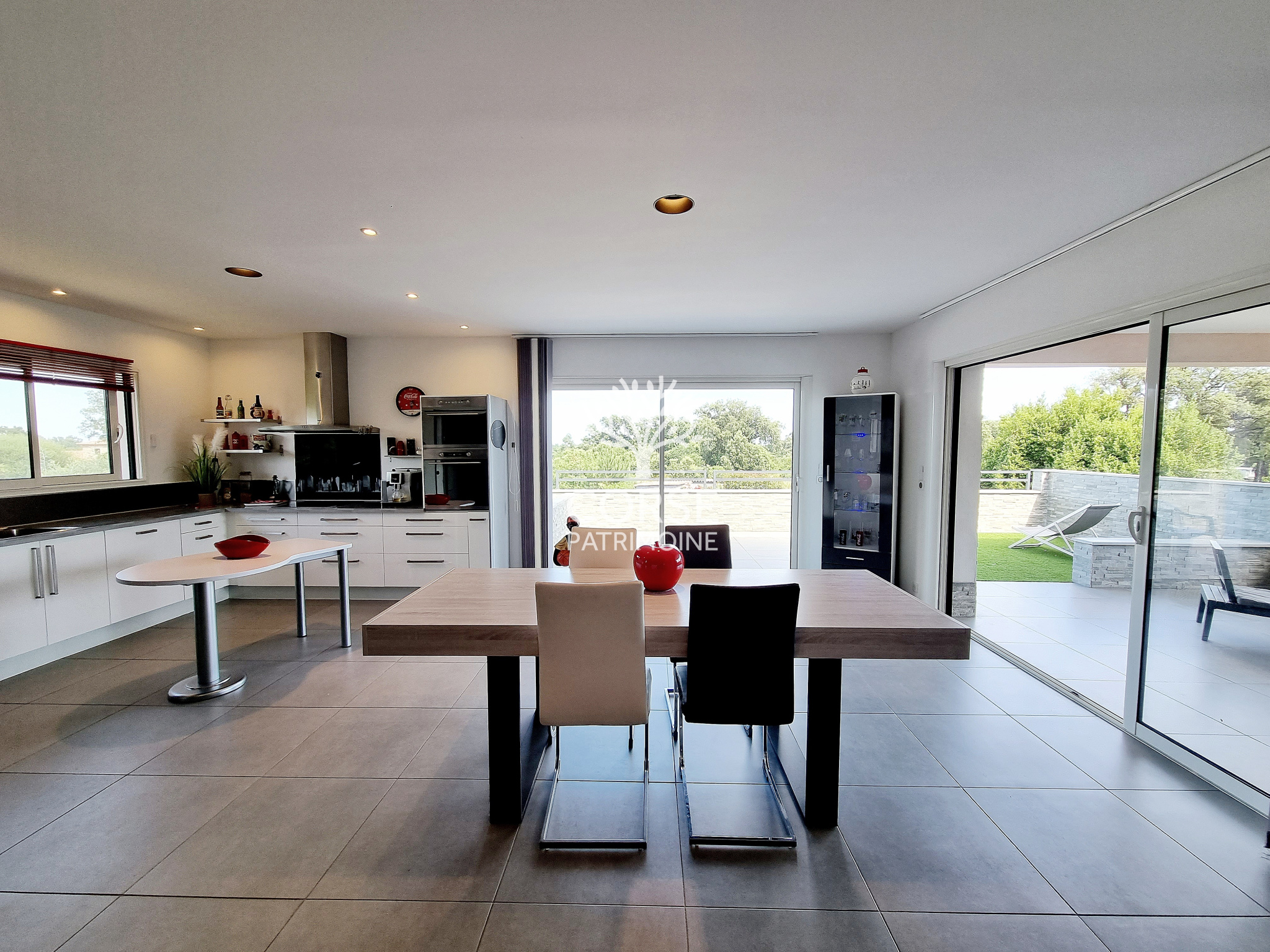 Édifiée sur deux niveaux, elle se compose au niveau principal d’un salon avec cuisine ouverte entièrement équipée et aménagée donnant sur une agréable terrasse couverte, 4 chambres dont une suite parentale avec salle d’eau et WC, une salle de bain avec baignoire balnéo, une salle d’eau avec douche à l’italienne et un WC indépendant.